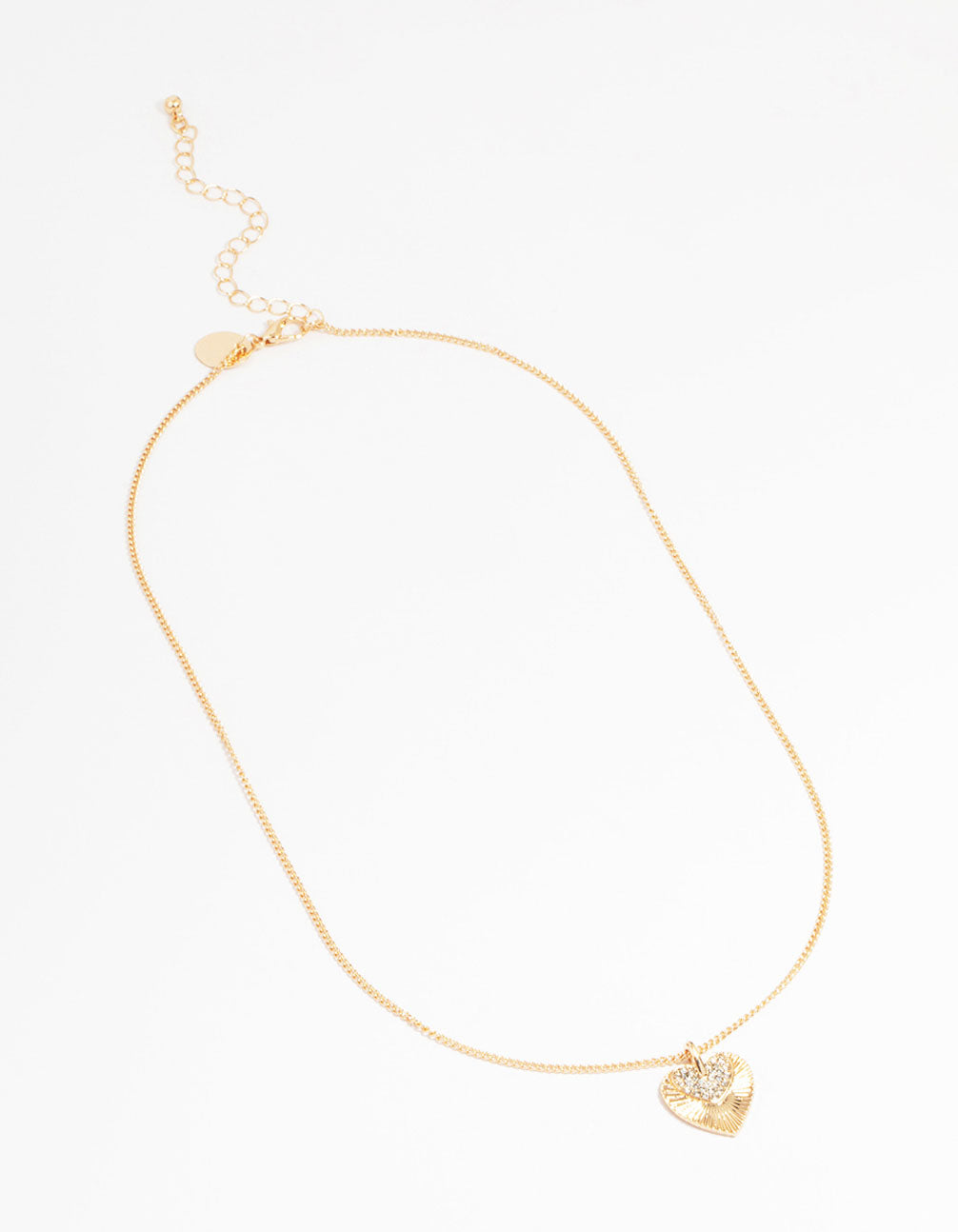 Gold Cubic Zirconia Textured Heart Pendant Necklace