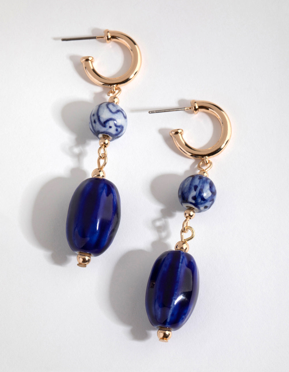 Impress with Santorini Sky: a Lovisa collection inspired by the colours of the seaside city. These pretty earrings feature a gold-toned huggie hoop with blue ceramic bead attachments on a long chain drop. Pair these with white to channel volcanic seaside vibes.
