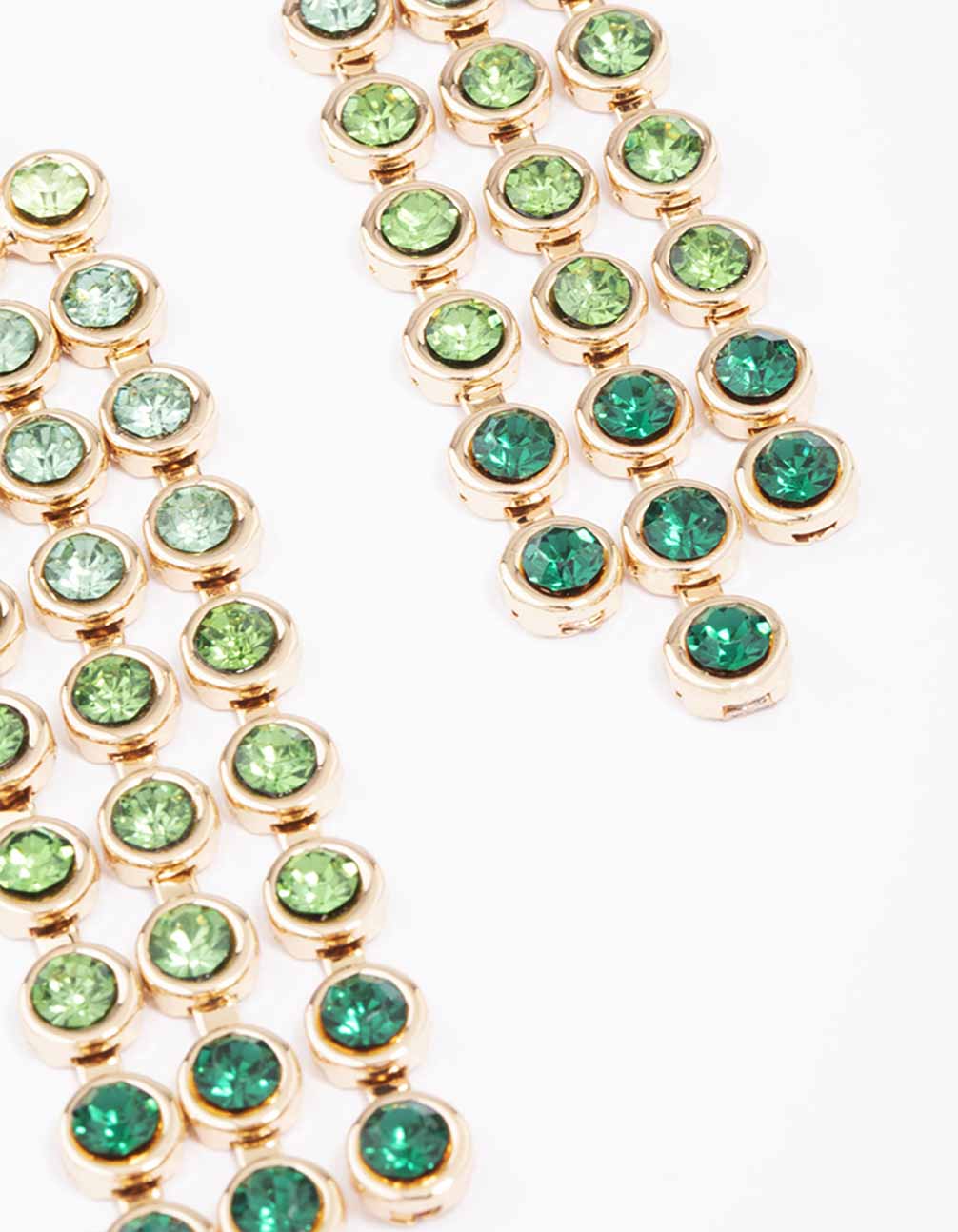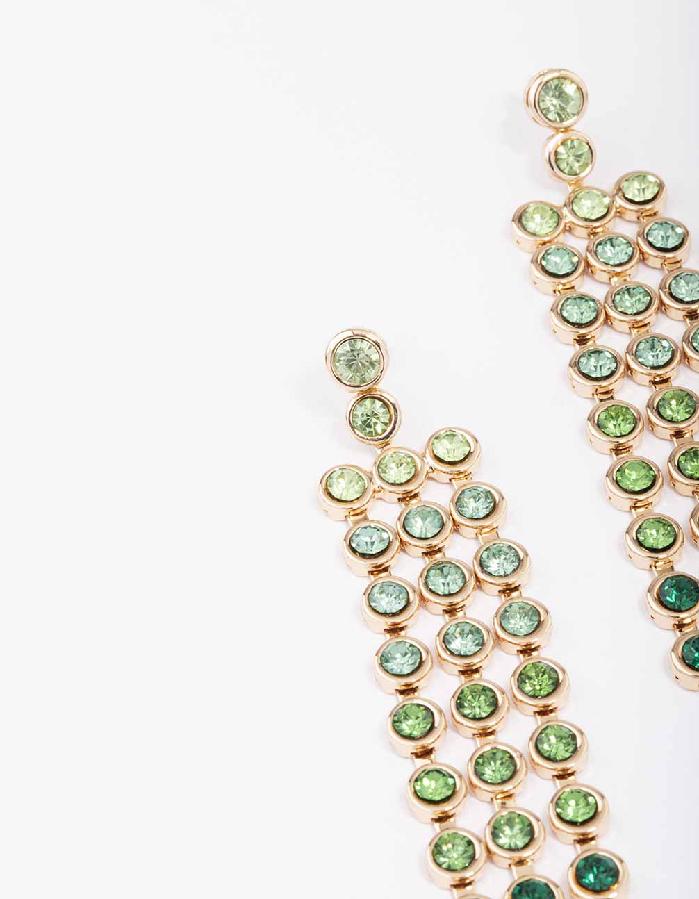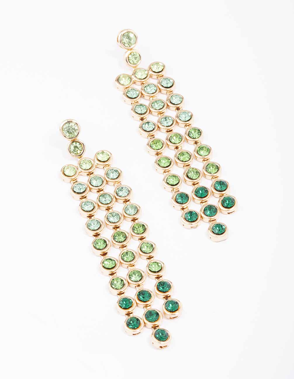 These dazzling drop earrings feature a collection of green, gradient diamantes for a multi-dimensional effect.