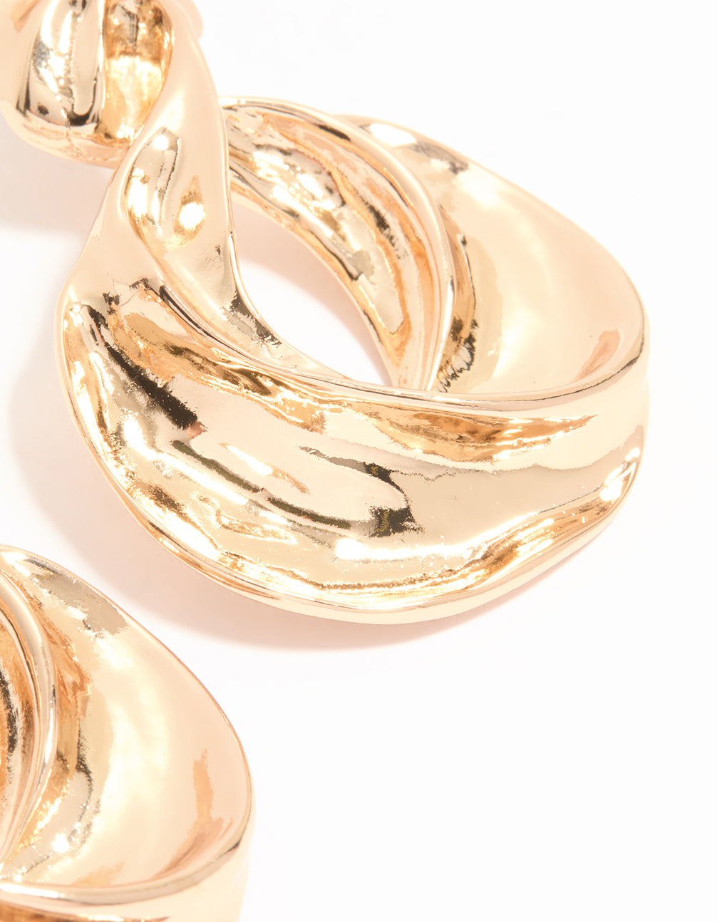 Elevate your style with these Gold Twisted Loop Drop Earrings. These drop earrings feature a unique twisted loop design in a sleek gold finish, making them a standout accessory for any occasion. Whether you're heading to a casual lunch or dressing up for an evening out, these stunning earrings add a touch of sophistication to your look. Pair them with a neutral outfit for effortless chic or team them with bold colours for a striking contrast. Lightweight and versatile, these statement earrings are ideal for those who love jewellery that's both stylish and wearable. Add these timeless gold drop earrings to your collection for a go-to piece that works day or night!