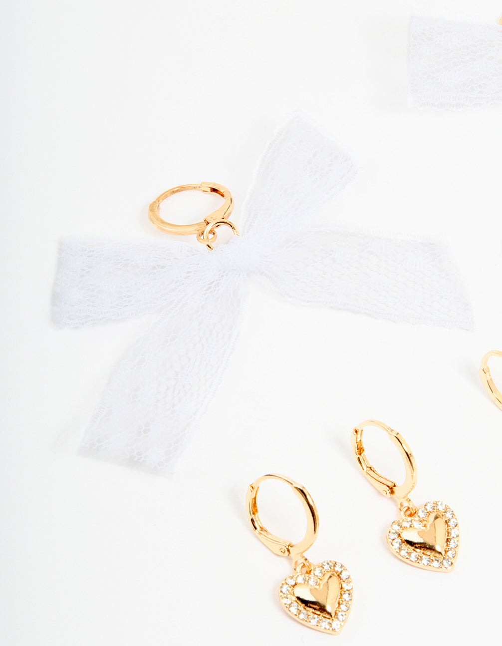 Add a touch of sparkle and charm to your look with this Gold White Bow & Clover Shoe Charms Pack. This delightful set features two white lace fabric bow shoe charms, two diamante-edge heart charms, two gold-toned shamrock charms, and two gold-toned flower charms. Perfect for personalising your favourite shoes, these versatile accessories are easy to clip on or tuck into your laces, instantly elevating your style. Whether you're dressing up for a party, heading to brunch, or just want to add a playful twist to your everyday trainers, these shoe decorations are your perfect match. Pair them with a cute summer dress for a whimsical vibe or add them to loafers for a fun, chic touch. Stylish, fun, and oh-so-easy to use, they're the ultimate way to step up your footwear game!
