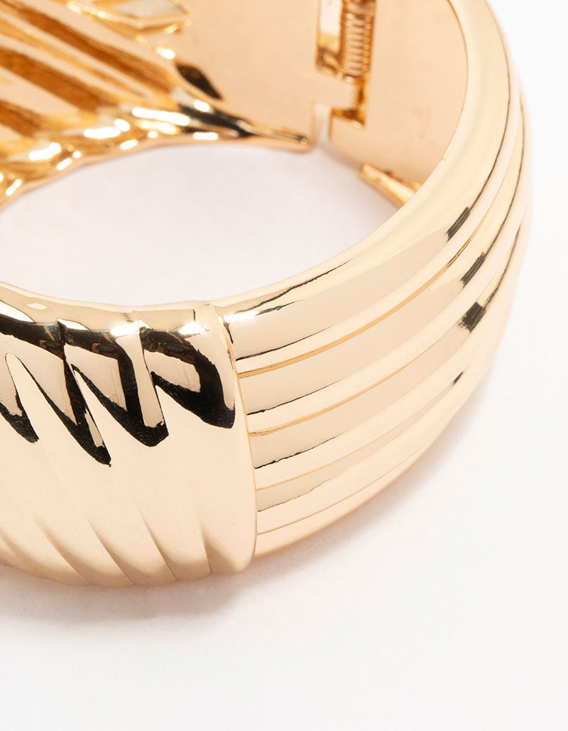 Elevate your wrist game with this lavish Gold Wrapped Detailed Thick Wrist Cuff. The intricate detailing and bold, chunky silhouette make it a must-have for adding glamour to any look.