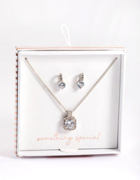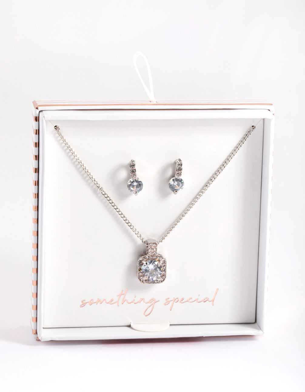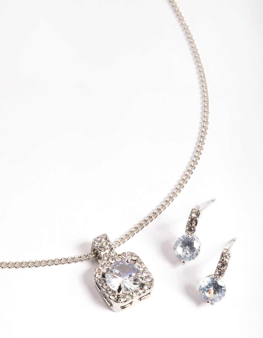 • Silver Square Halo Necklace & Stud Earrings Set - link has visual effect only