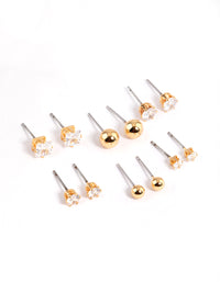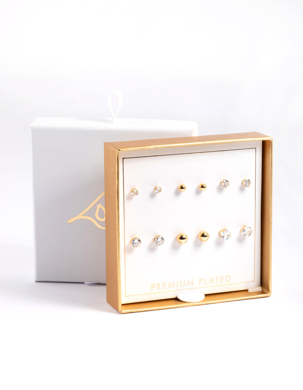 Gold Plated Cubic Zirconia & Ball Stud Earrings 6-Pack