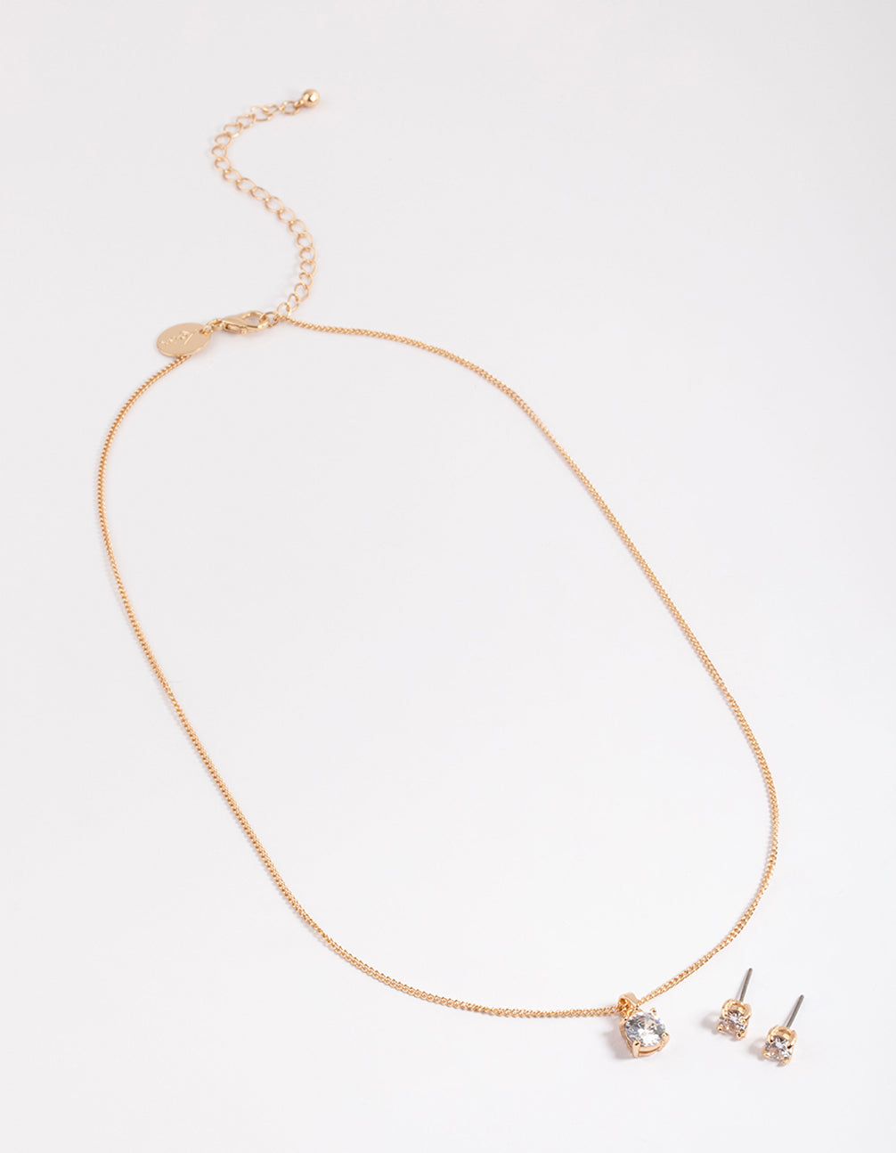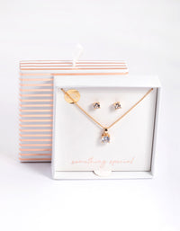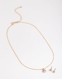 Gold Cubic Zirconia Solitaire Necklace & Stud Earrings