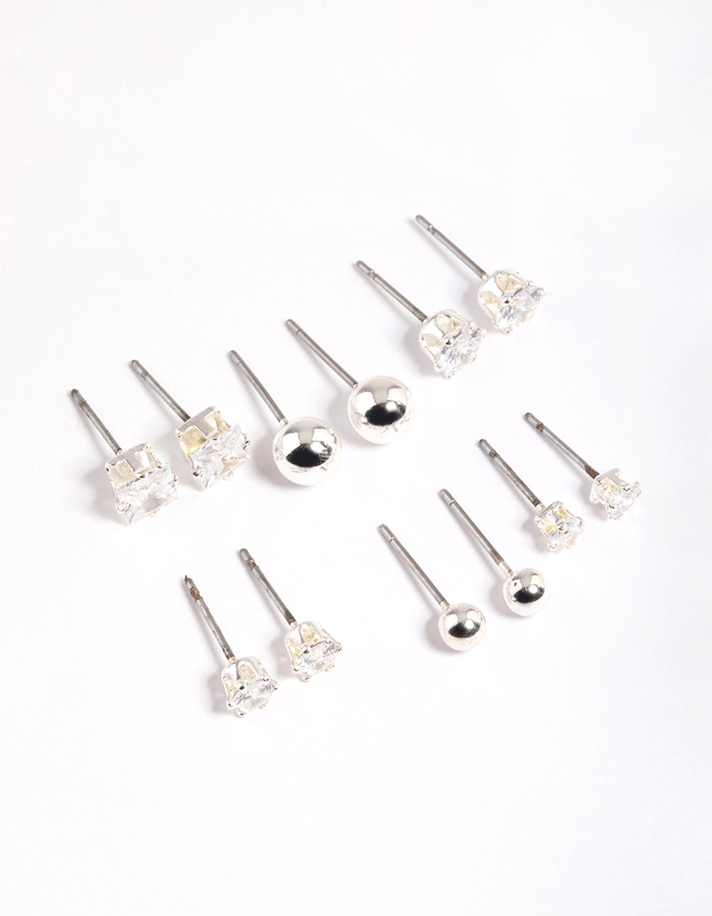 • Silver Plated Cubic Zirconia Ball Stud Earrings 6-Pack - link has visual effect only
