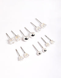 Silver Plated Cubic Zirconia Ball Stud Earrings 6-Pack