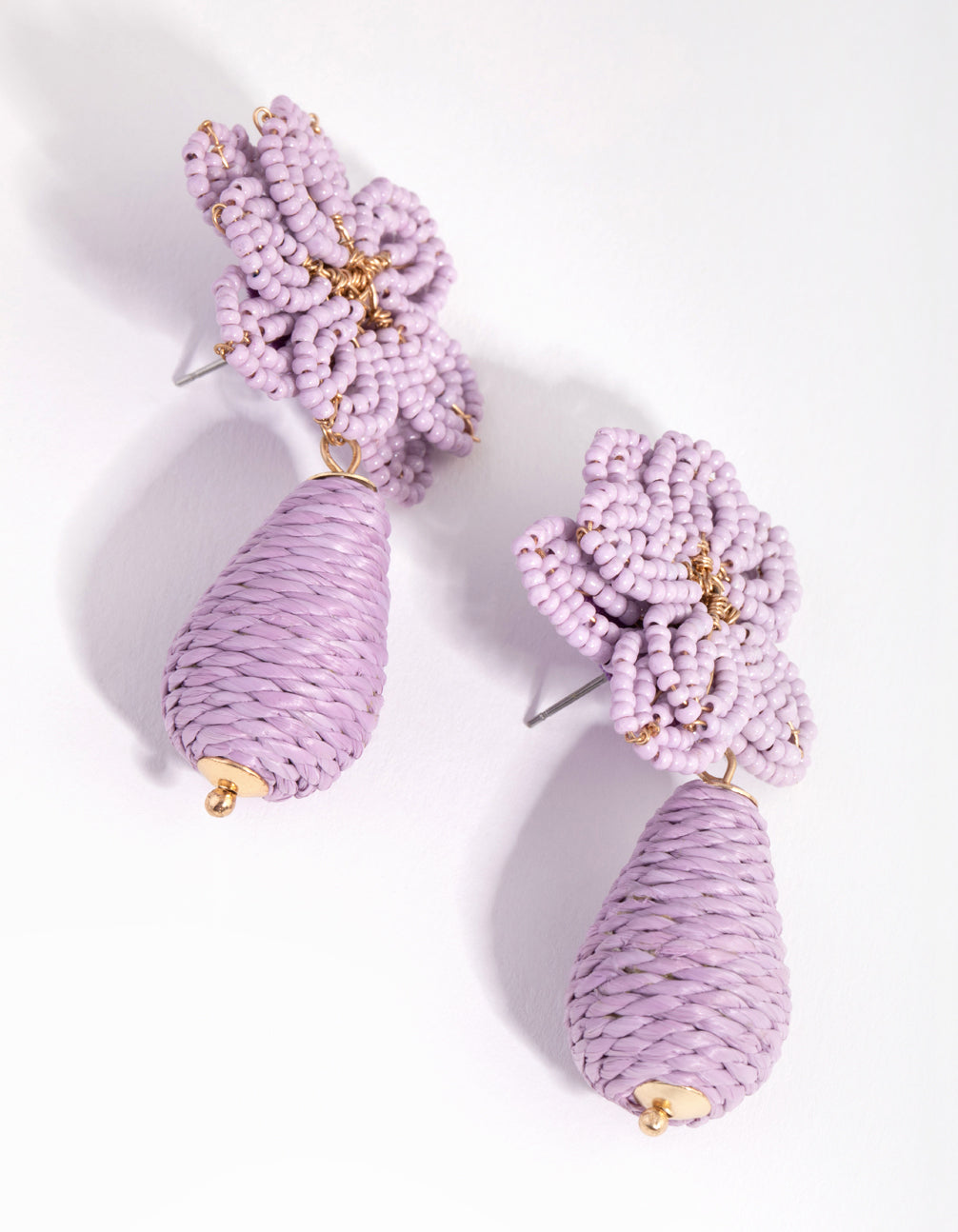 Evoke sunset strolls along the beach with these dreamy earrings. They feature a large, lilac, seed bead flower with a thread-wrapped drop detail. This is the perfect statement piece, wear them and get noticed!