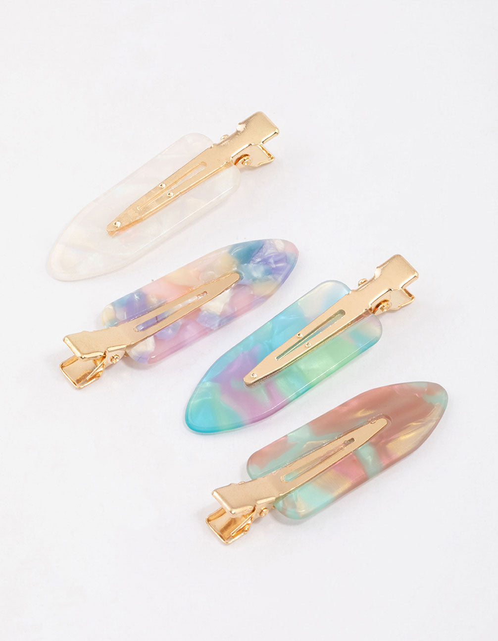 - This pack includes four individual, creaseless hair clips in a cute patterned design.