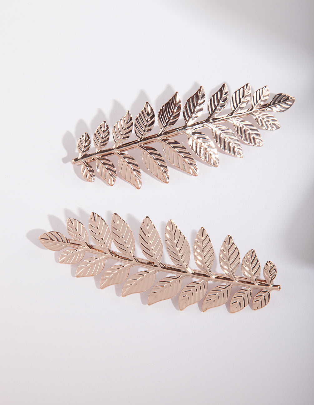 Whether you are heading to brunch, a wedding or just wanting to look glamorous for a party, this hair accessory is the perfect way to complete your event ensemble! This duo pack of rose-gold-toned clips feature a cut-out leaf design.