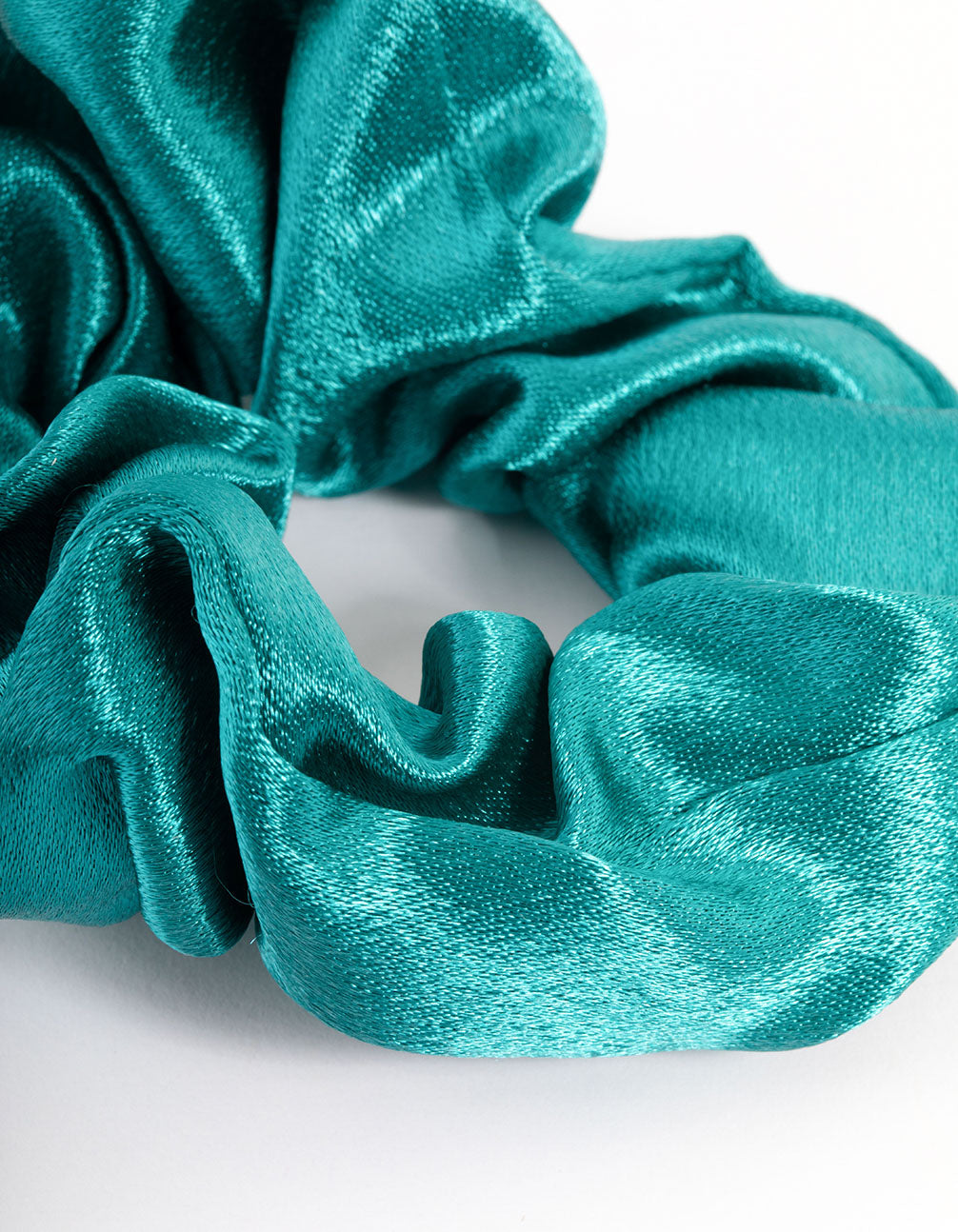 - Our teal-coloured fabric srcunchie is designed for a silky smooth feel in the hair to minimise frizz.