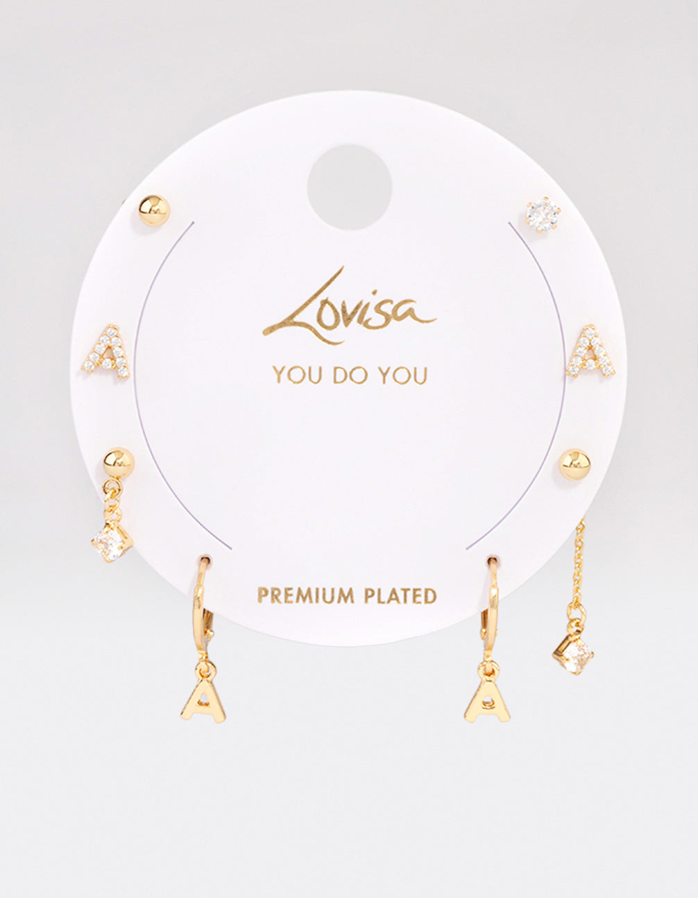 Personalise your ear stack with our collection of Ear Stackers! Sport your initials, the initials of a loved one, or a celebrity crush with our pack of eight individual earrings - including a set of huggie hoops and studs of the letter 'A.'