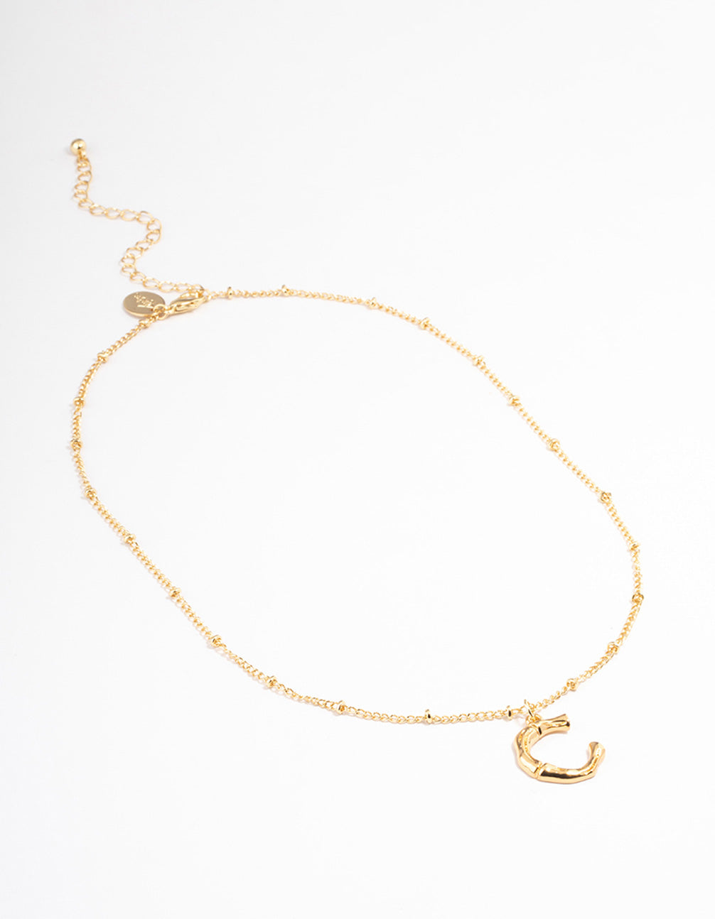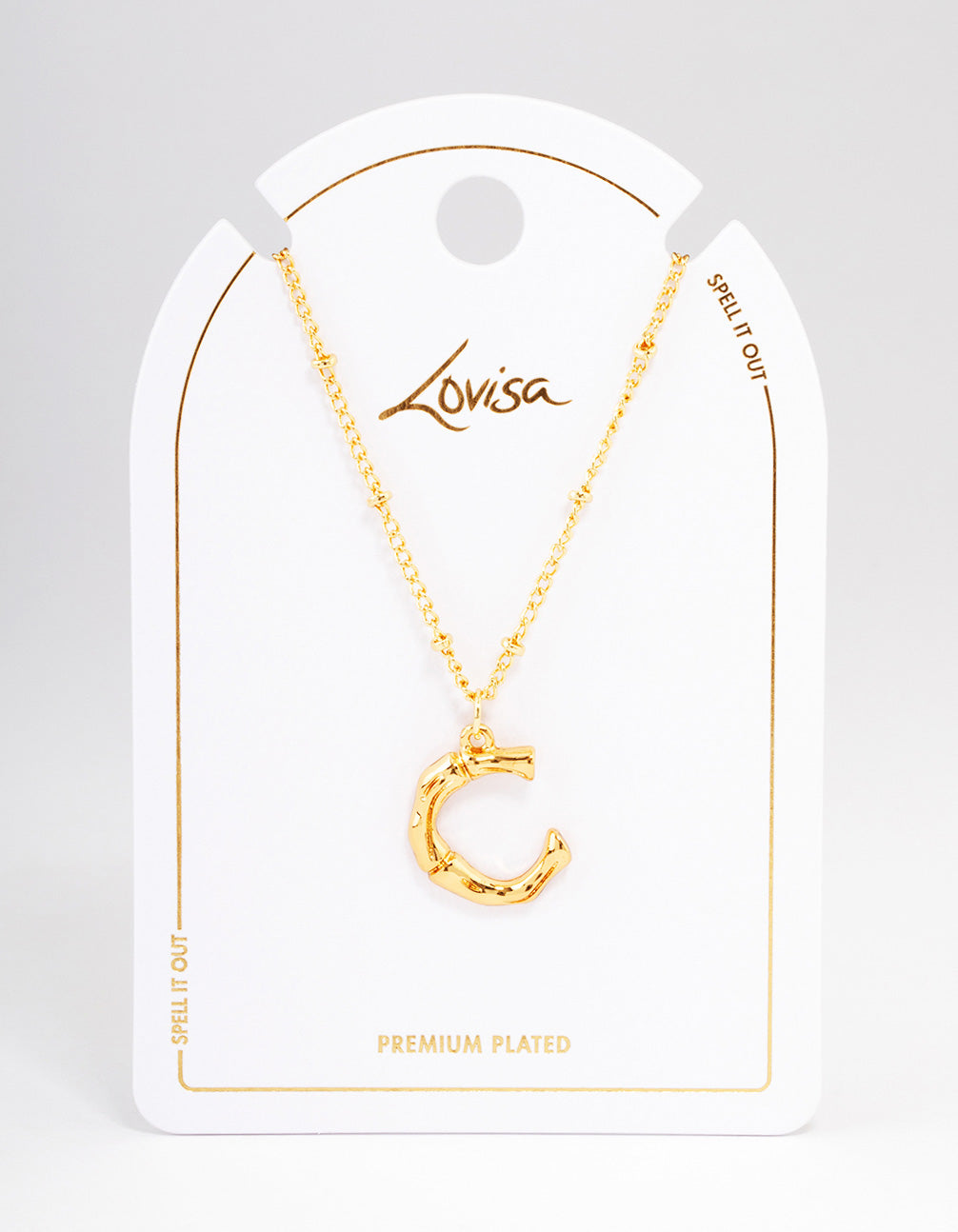 - This letter 'C' initial necklace is made with real gold plating and features an intricate, bamboo-inspired texture for a unique finish. Style this necklace with a zodiac ear stacker for a curated finish.