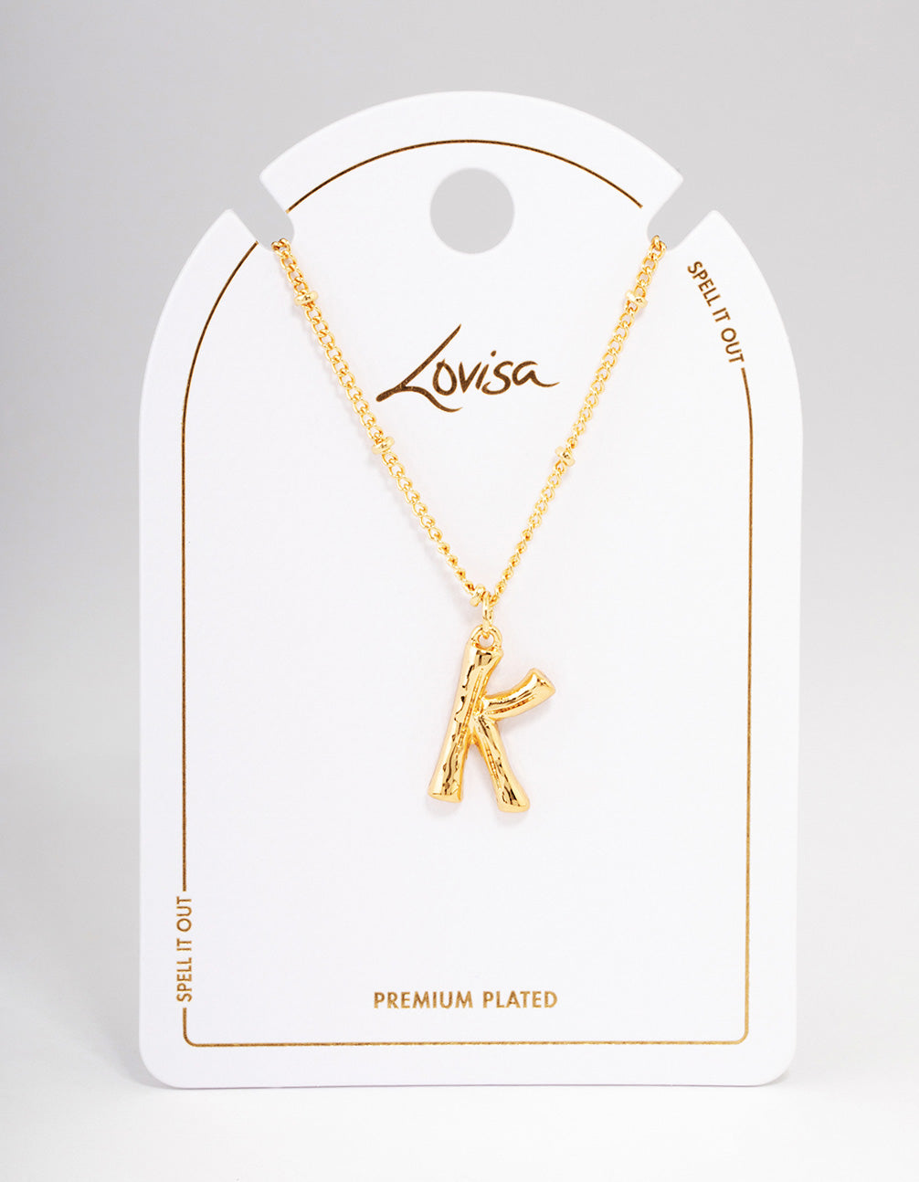 Letter 'K' Gold Plated Bamboo Initial Necklace Letter 'K' Gold Plated Bamboo Initial Necklace Letter 'K' Gold Plated Bamboo Initial Necklace