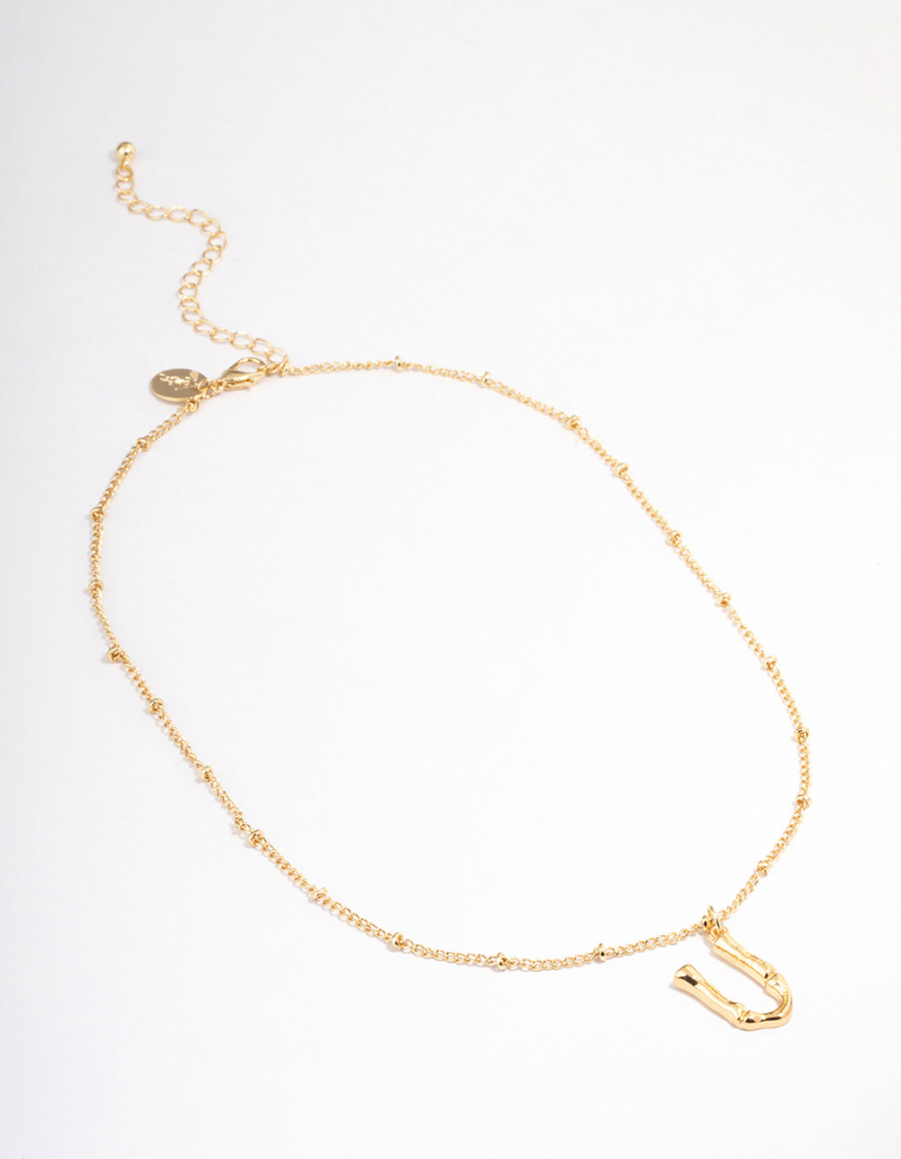 Letter 'U' Gold Plated Bamboo Initial Necklace Letter 'U' Gold Plated Bamboo Initial Necklace Letter 'U' Gold Plated Bamboo Initial Necklace