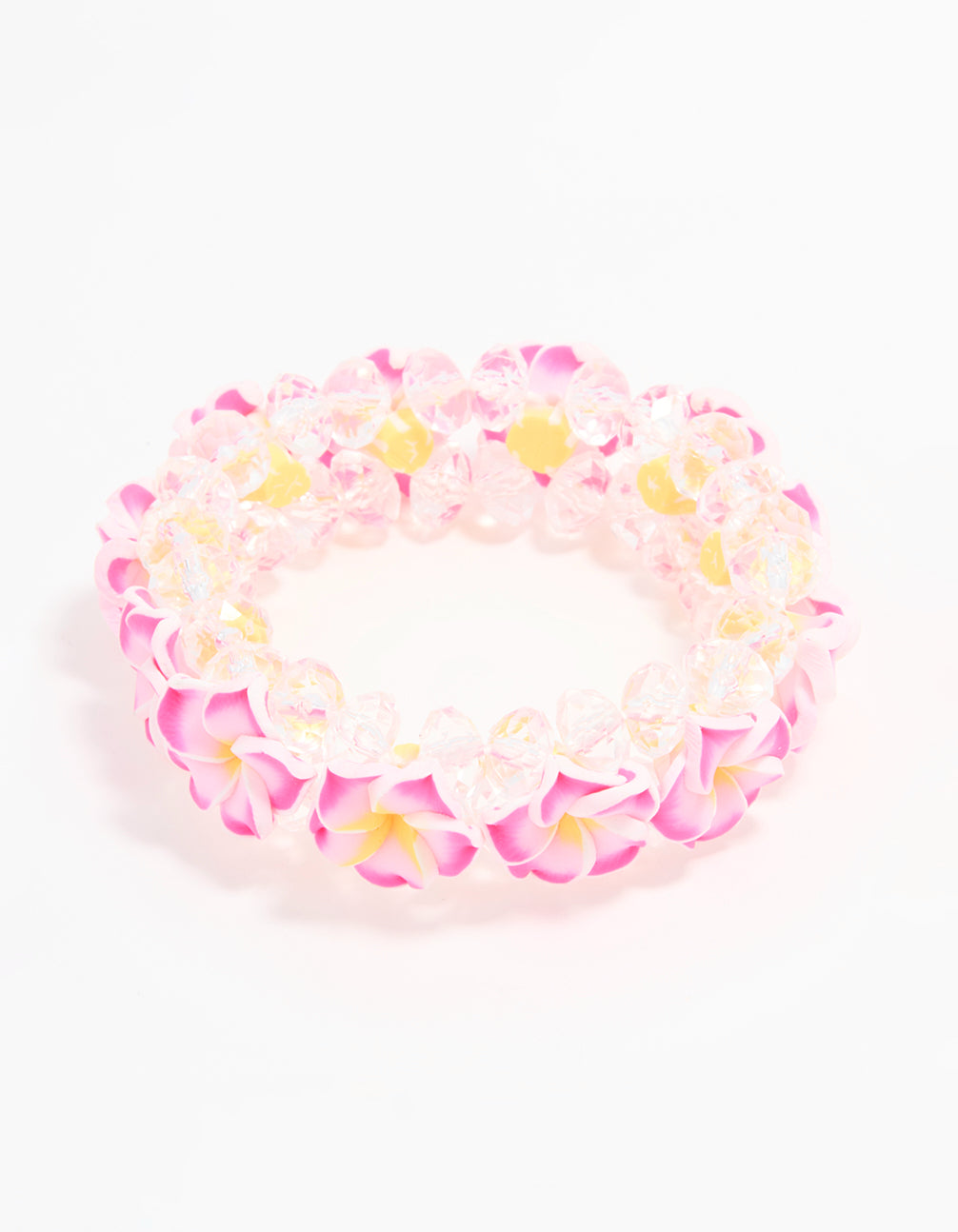 Kids Beaded Frangipani Flower Stretch Bracelet