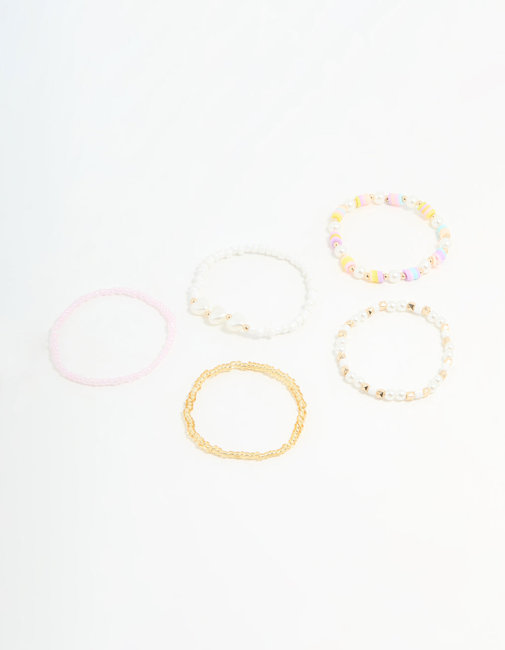 Kids Beaded Heart & Mixed Stretch Bracelets 5-Pack