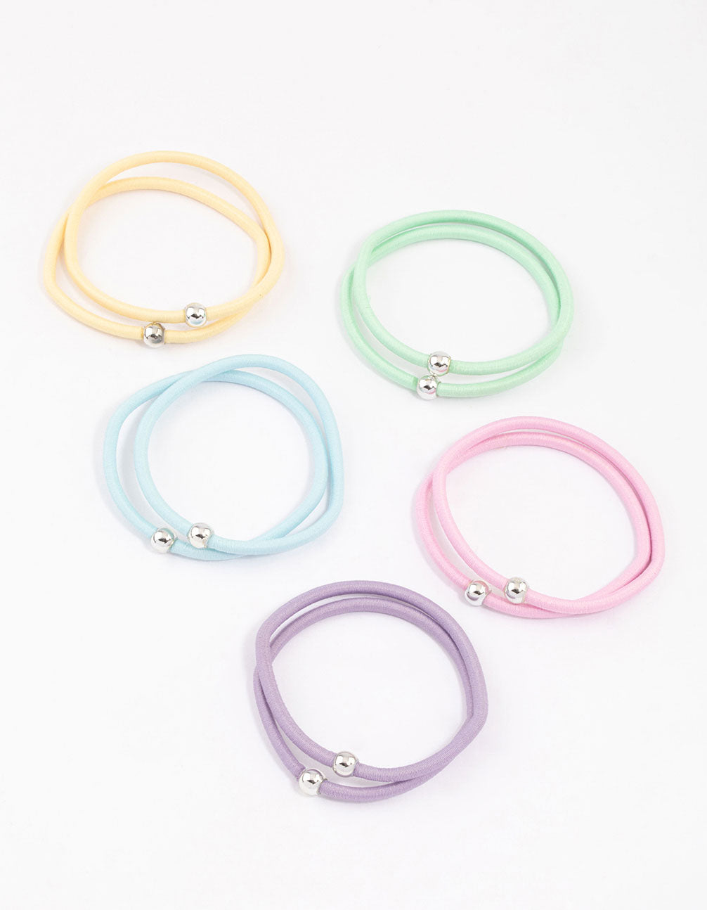 - This hair elastic pack contains ten individual hair ties in all the colours of the rainbow, perfect for adding a pop of colour to your hairstyle.