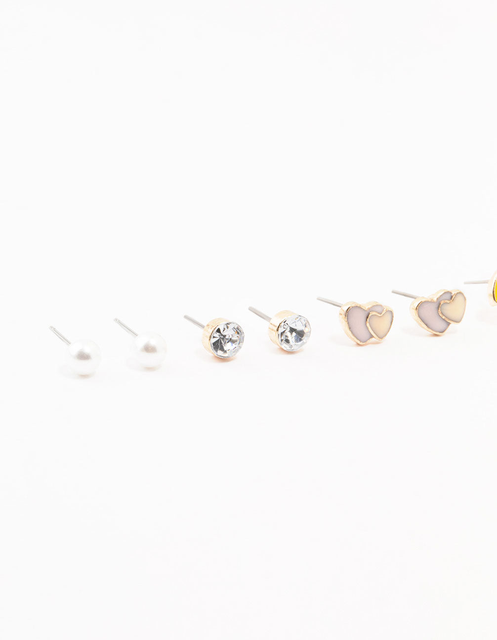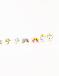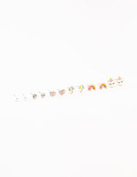 Kids Gold Pastel Unicorn Stud & Rainbow & Heart Earrings Pack