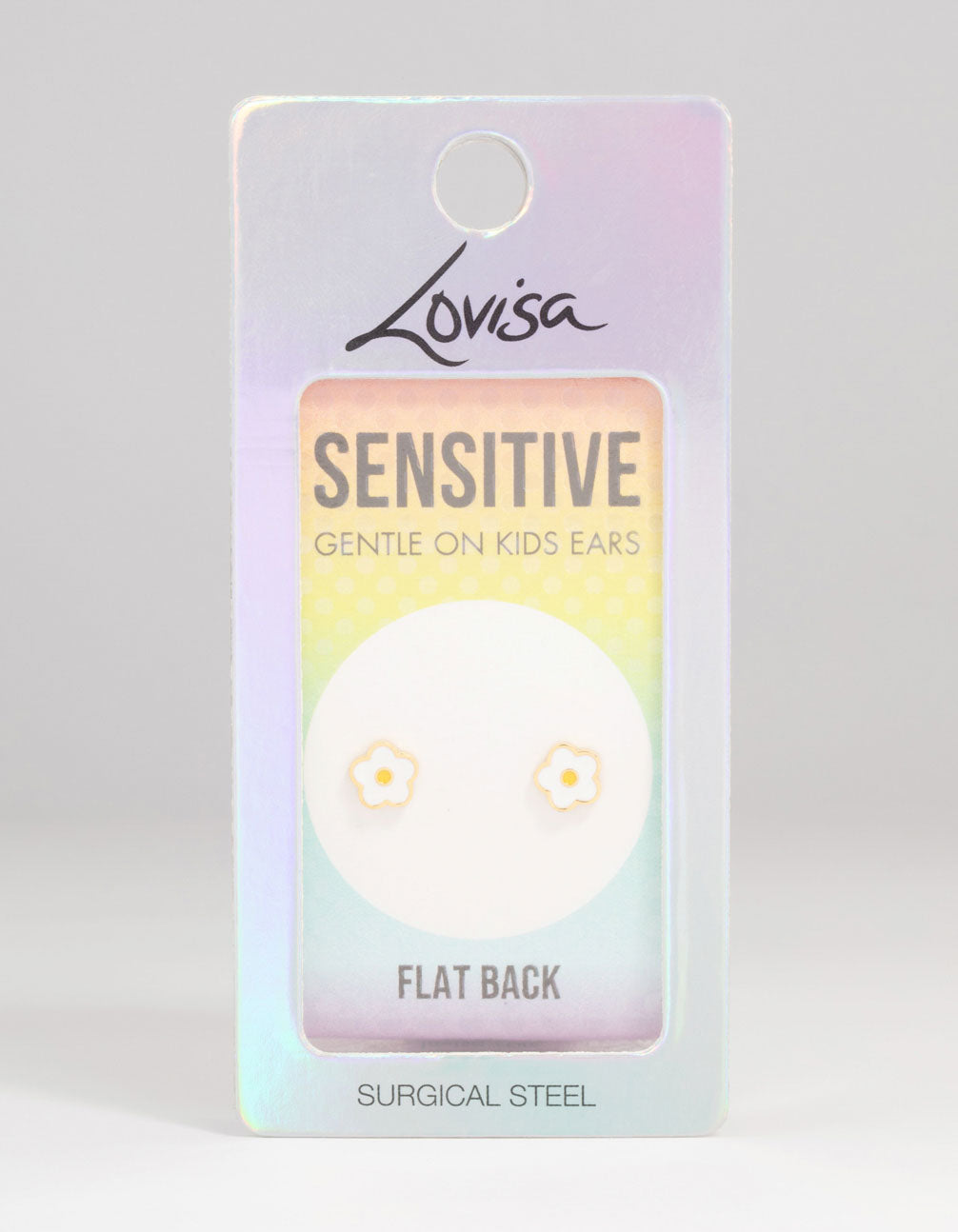 Make accessorising fun with these Kids Gold Plated Surgical Steel Flower Flat Back Earrings! They feature a sweet flower design, perfect for little ones with sensitive ears. Made from surgical steel, they're waterproof and ideal for everyday wear.