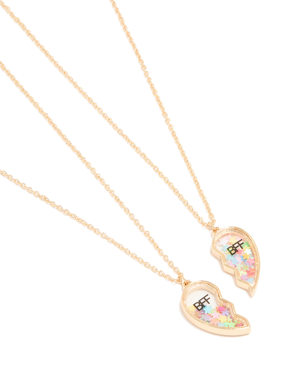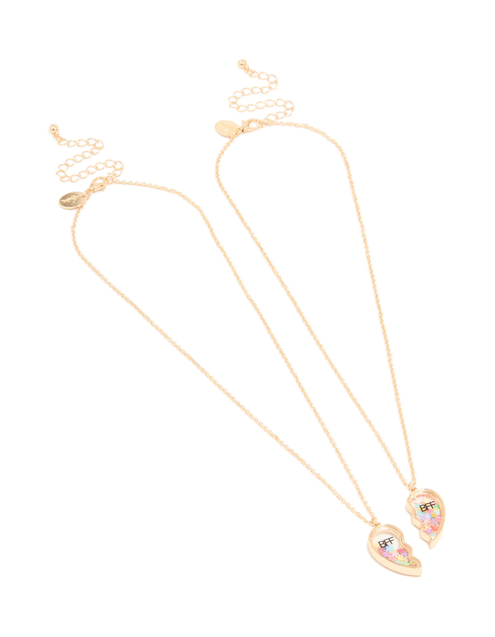 Kids Gold Shaker Heart BFF Pendant Necklaces 2-Pack