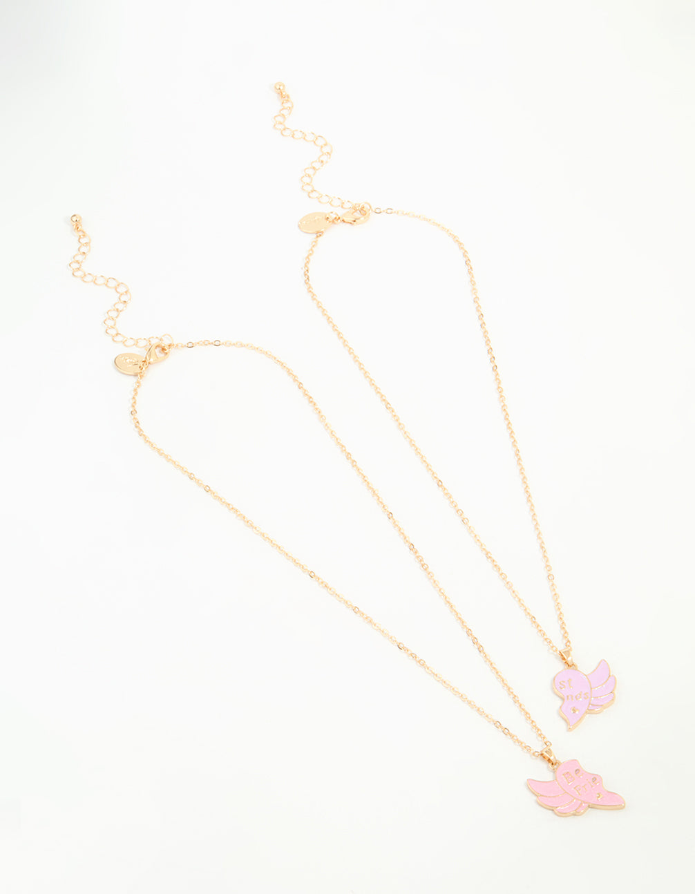 Kids Gold Wing Heart BFF Pendant Necklaces 2-Pack