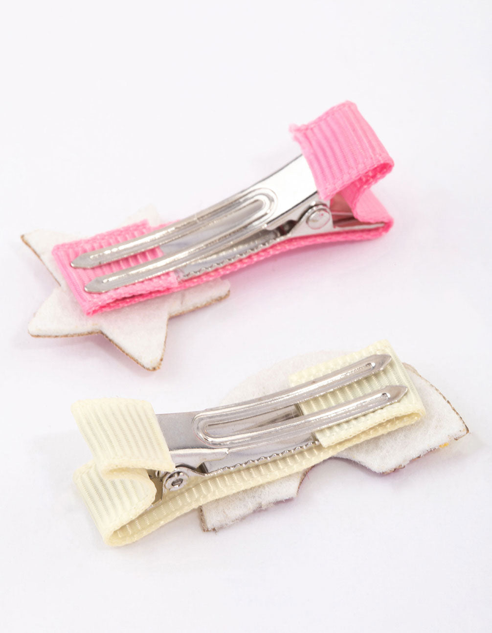 - This hair accessory pack contains four individual hair clips, featuring glittery stars for a playful finish.