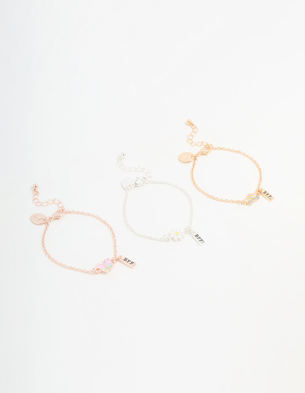 Kids Mixed Metal Flower & Butterfly Best Friends Bracelets 3-Pack