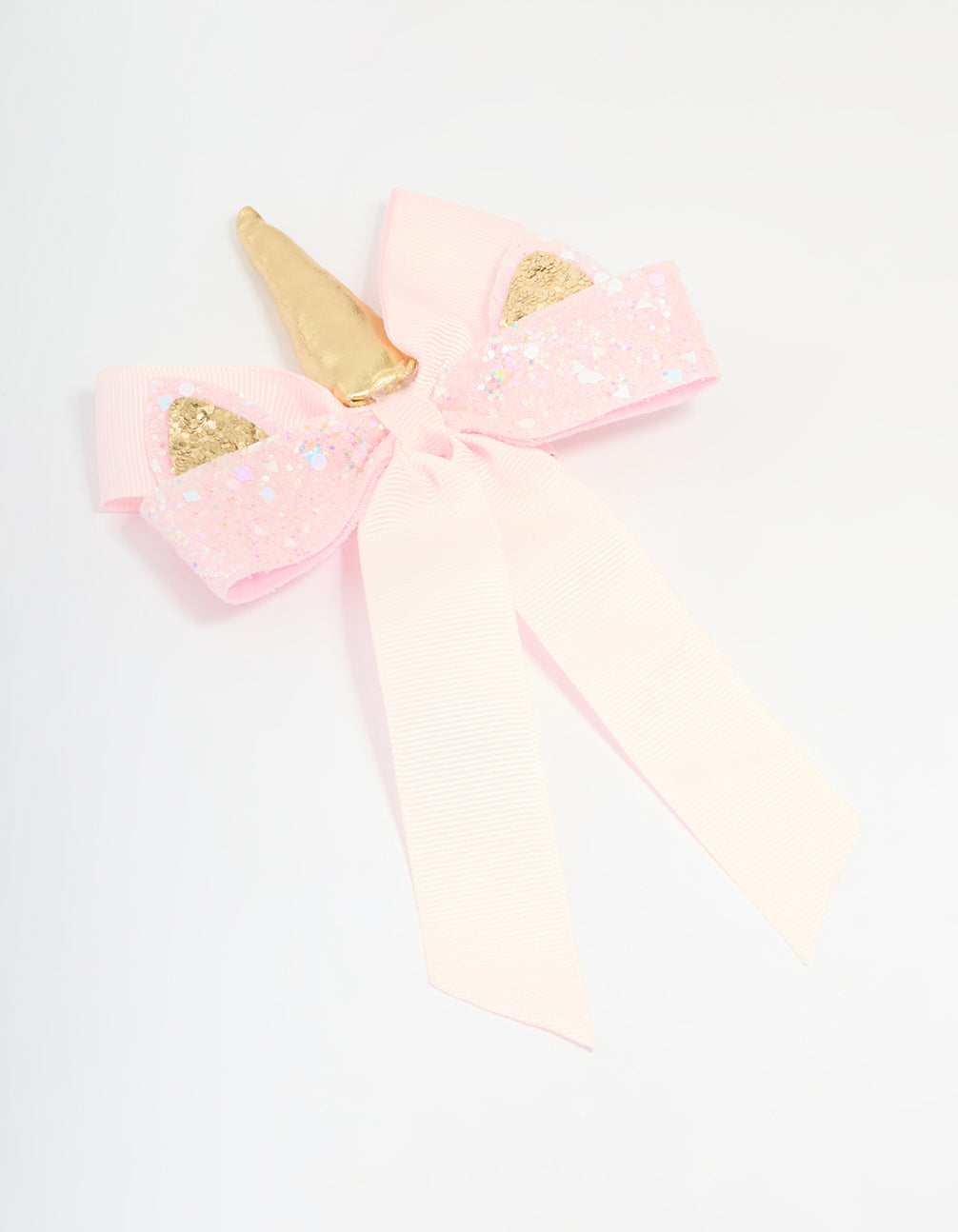Kids Pink Sequin Unicorn Hair Bow Clip