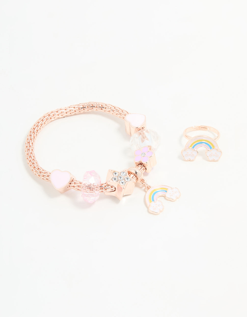Kids Rose Gold Rainbow Stretch Bracelet & Ring Set