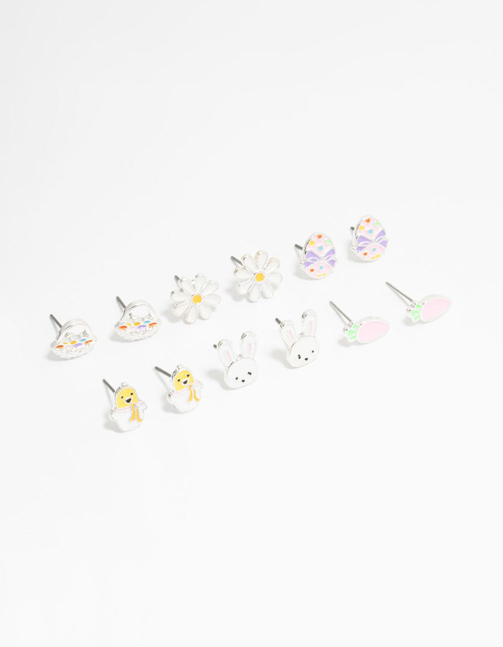 Kids Silver Chick & Easter Bunny Stud Earrings 6-Pack