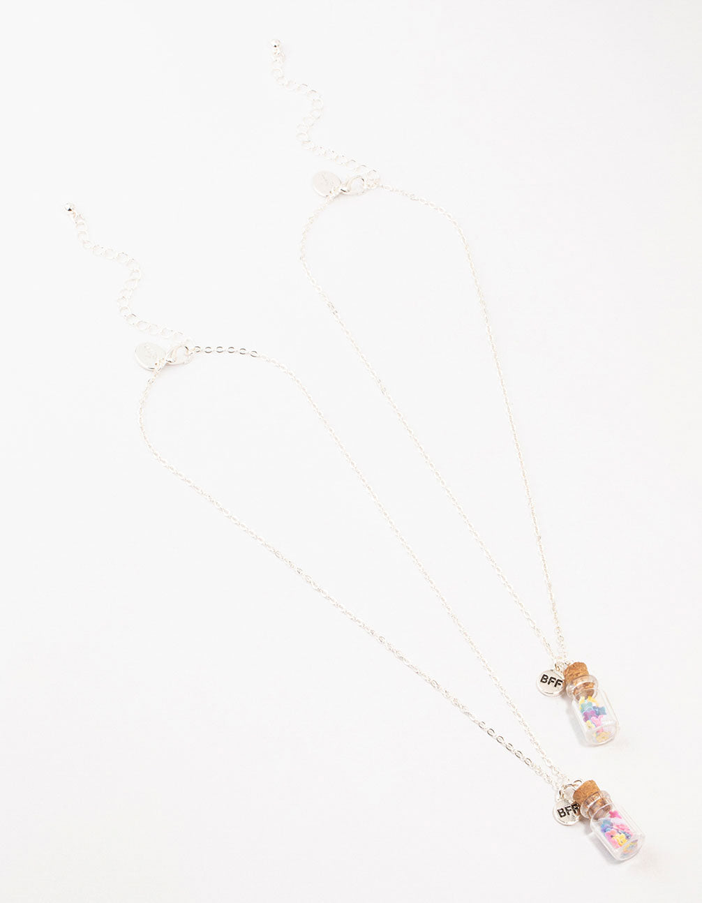 Celebrate friendship with our kids' BFF necklace pack! Perfect for little ones who want to match with their bestie, this set features shakeable bottle pendants filled with sparkling sequins. It's a fun, sparkly way to show they're besties for life.
