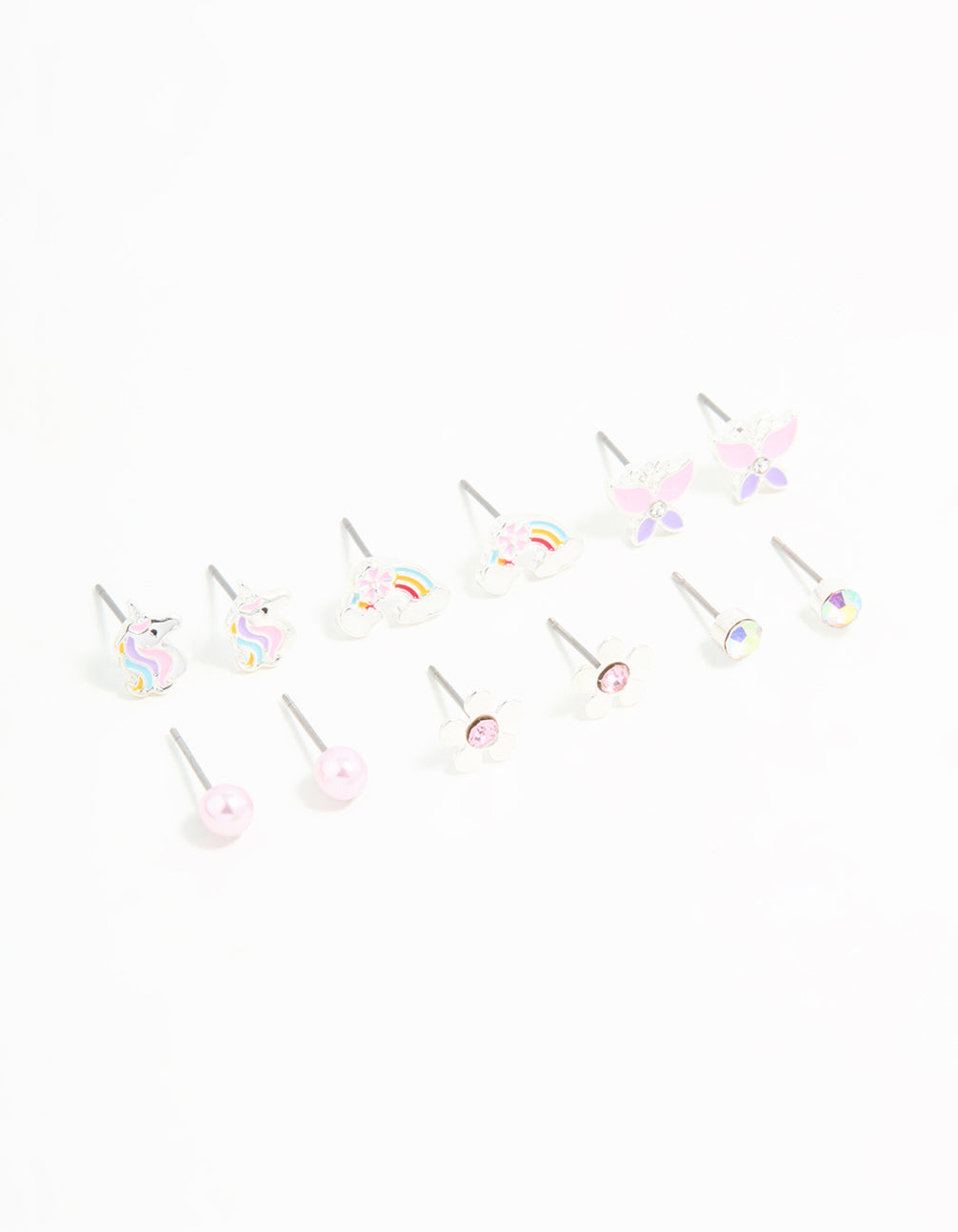 • Kids Silver Unicorn & Butterfly Stud Earrings 6-Pack - link has visual effect only