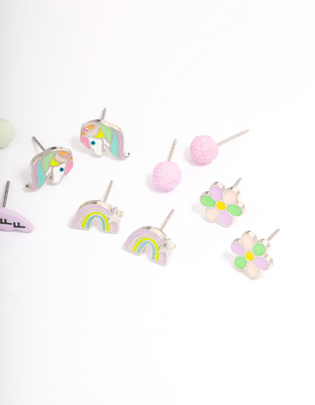 Kids Silver BFF Rainbow Stud Earrings 6-Pack