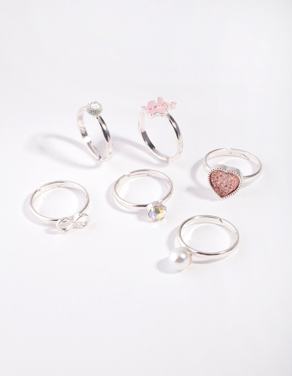 Kids Silver Pearly Heart 6-Pack Rings
