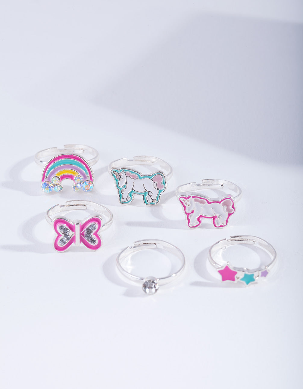 • Kids Silver Unicorn Enamel Ring 6-Pack - link has visual effect only