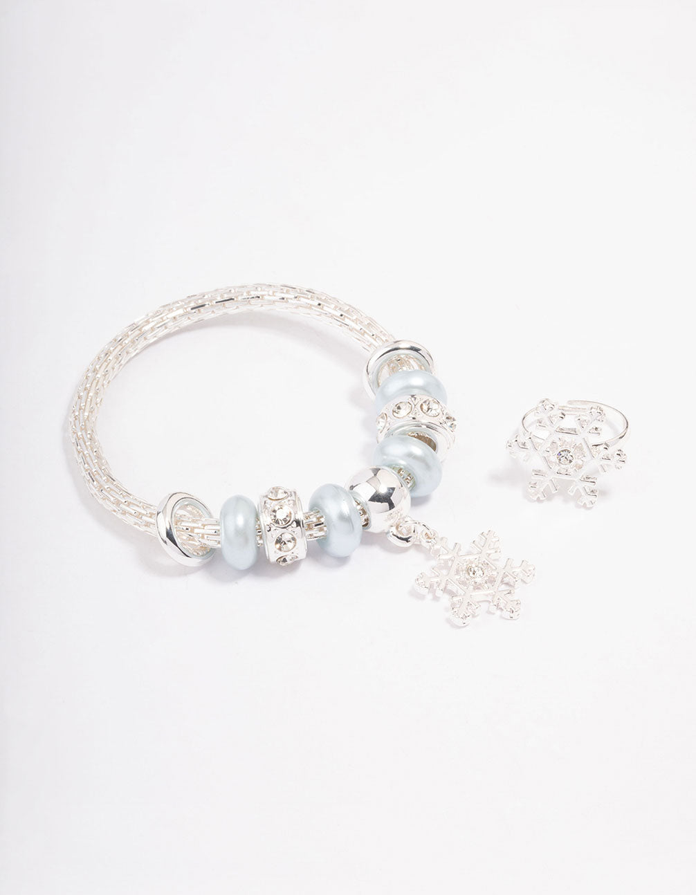 - Delight the little ones with this bracelet and ring gift set, featuring a silver snowflake charm bracelet and ring to match.