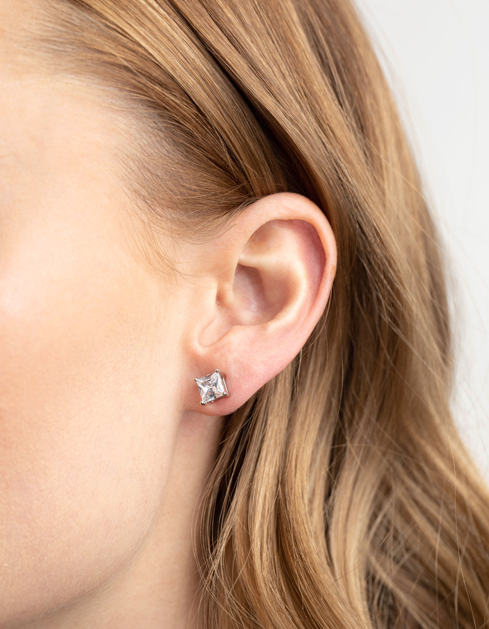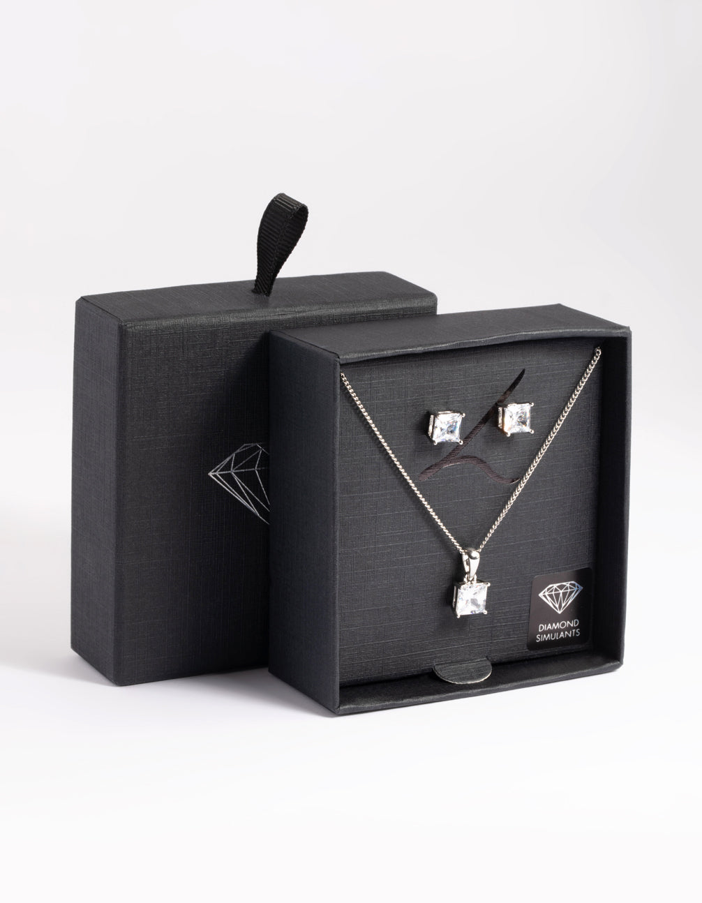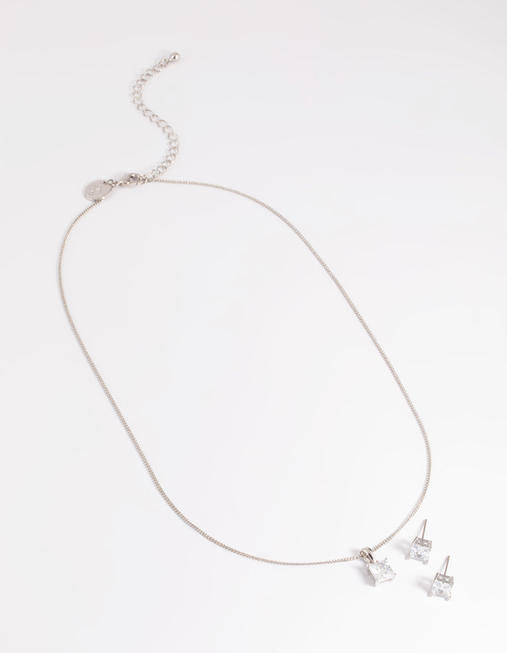 Silver Diamond Simulant Square Necklace & Earrings Set