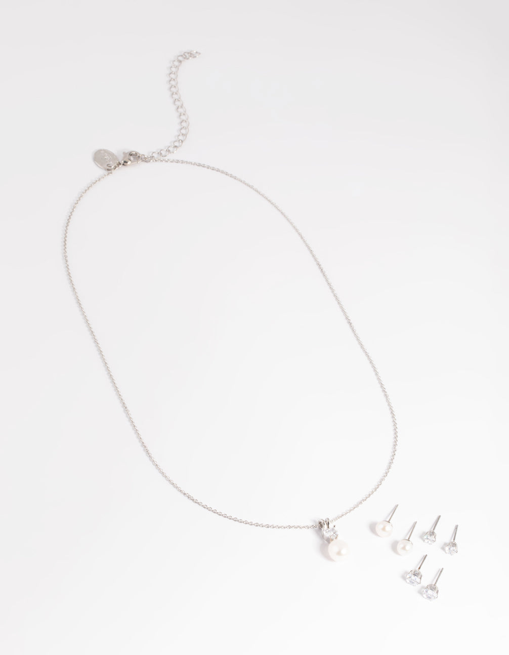 Silver Diamond Simulant Freshwater Pearl Necklace & Earrings Set Silver Diamond Simulant Freshwater Pearl Necklace & Earrings Set Silver Diamond Simulant Freshwater Pearl Necklace & Earrings Set Silver Diamond Simulant Freshwater Pearl Necklace & Earrings Set Silver Diamond Simulant Freshwater Pearl Necklace & Earrings Set