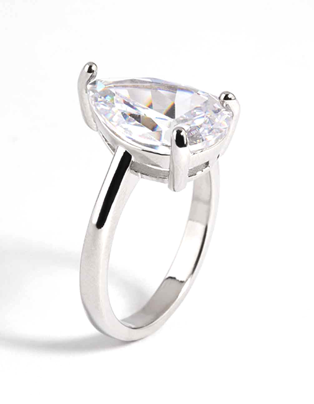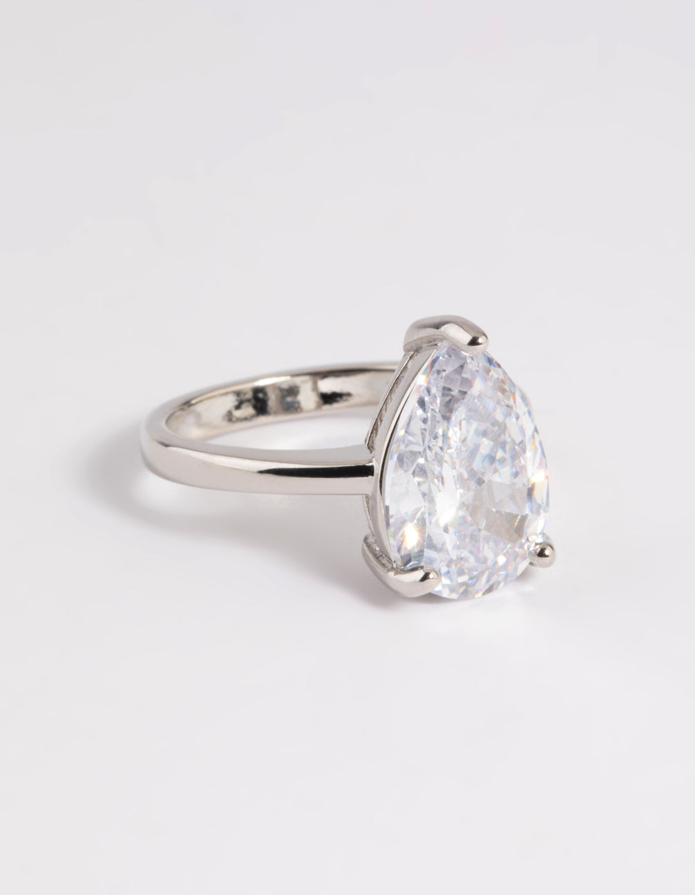 Rhodium Diamond Simulant Teardrop Ring