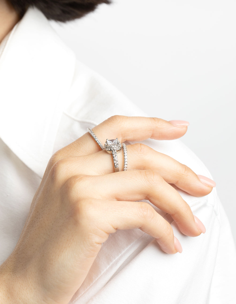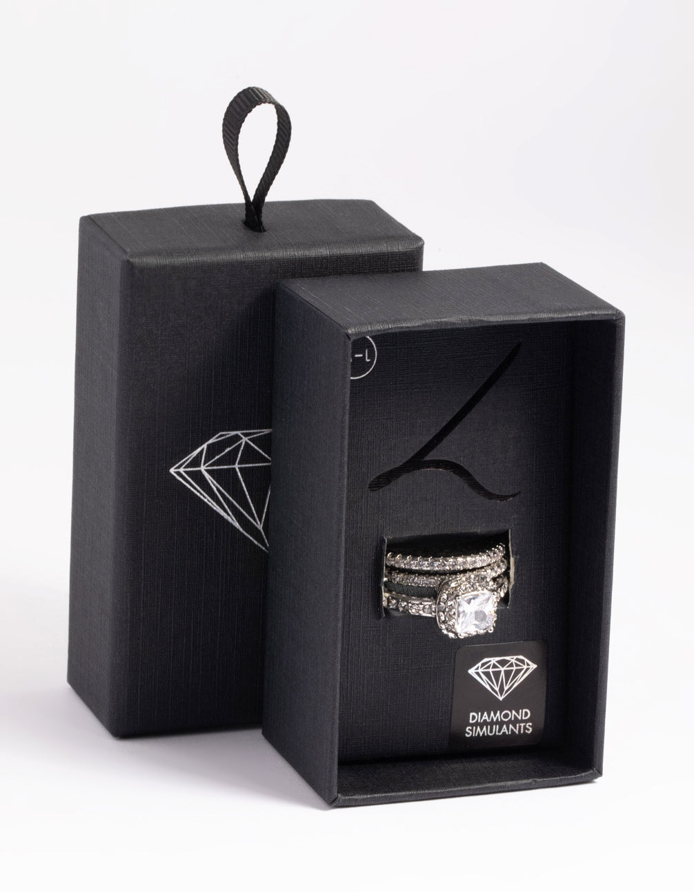 Silver Diamond Simulant Square Ring Pack
