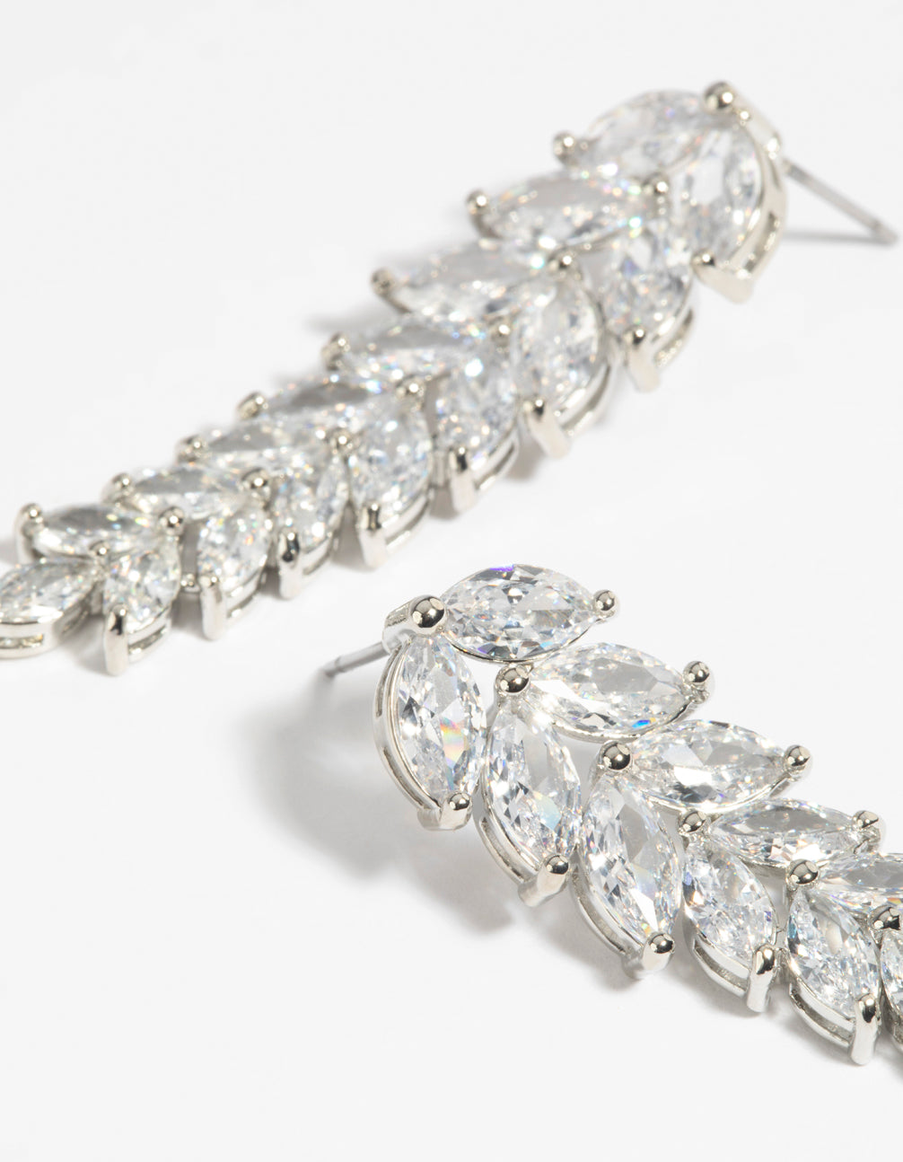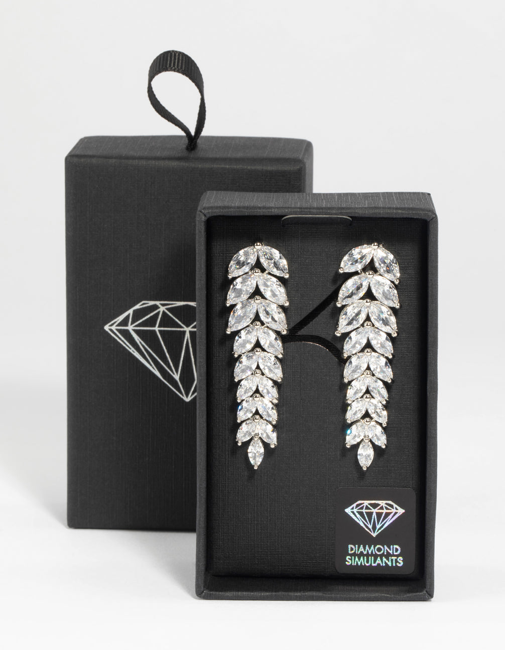 Dazzle with diamond simulants! These earrings feature diamond simulants, which are crystals that have been engineered to closely resemble the depth, colour and clarity of true diamonds. The design boasts classic 1920s styling. Elegant and timeless, dress them up or down!