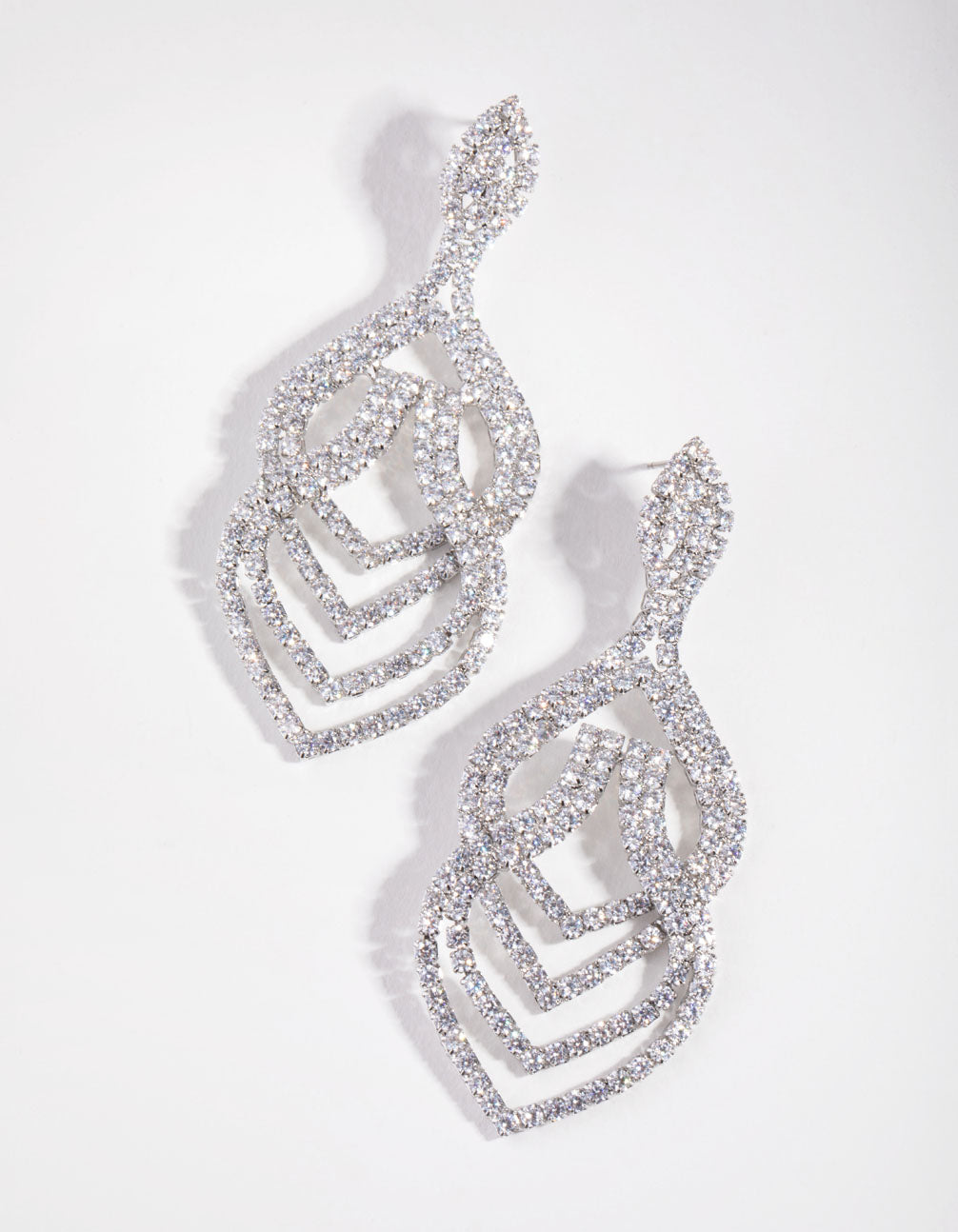 Sparkle and shine with a pair of statement earrings. These silver-toned earrings boast a pear shaped drop, adorned with diamond simulants that are cut to replicate the look of a true diamond. Perfect for adding a glamorous finishing touch to your evening ensembles!
