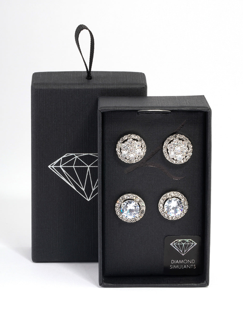 This silver-toned flower and halo earring pack includes two sets of studs with diamante embellishments for a hint of glamour!