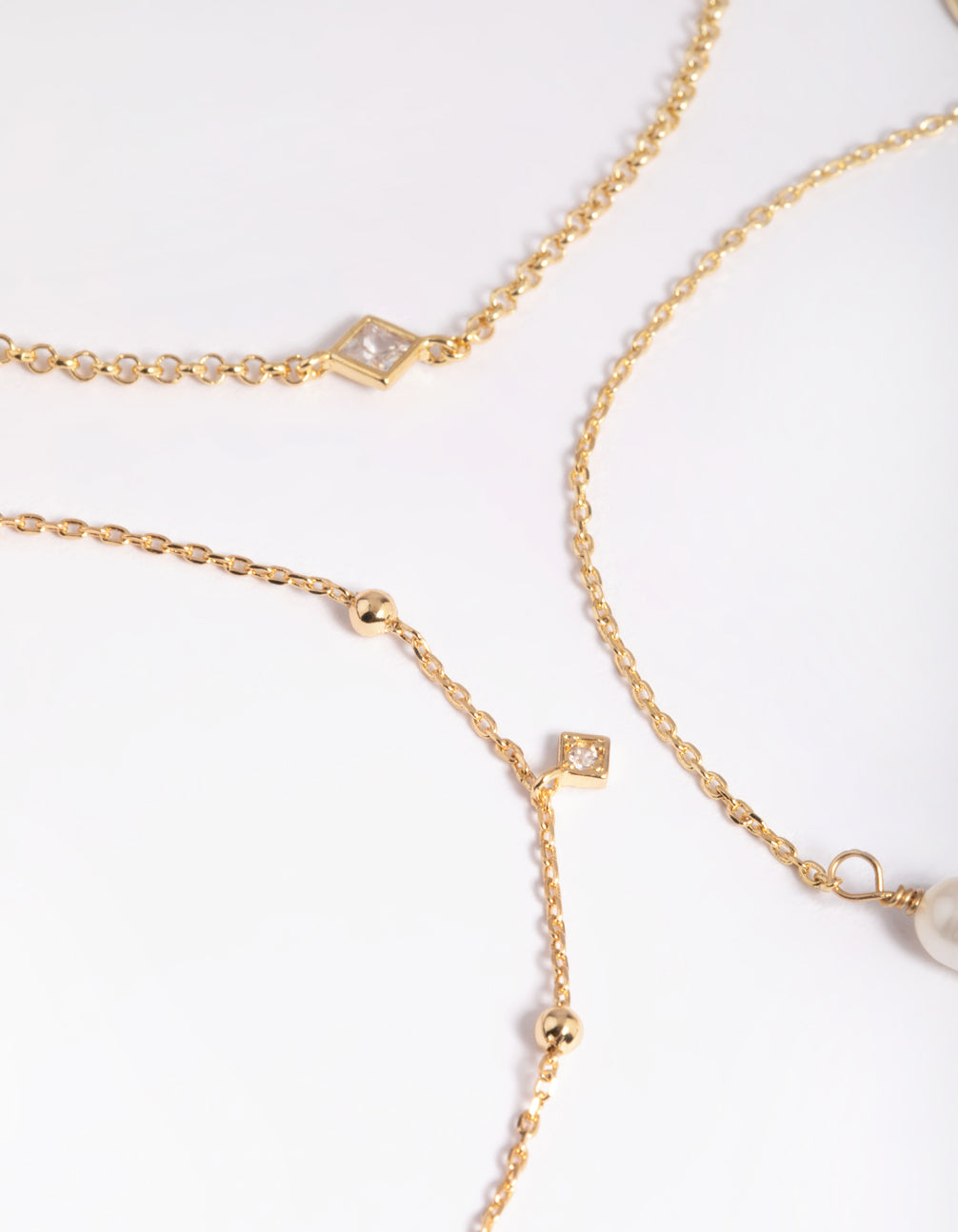 Gold Plated Brass Pearl & Cubic Zirconia Charm Bracelet