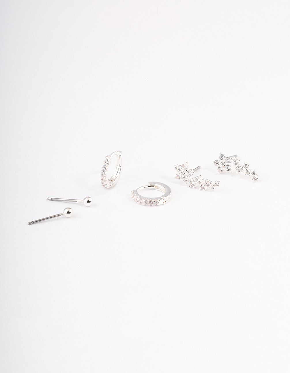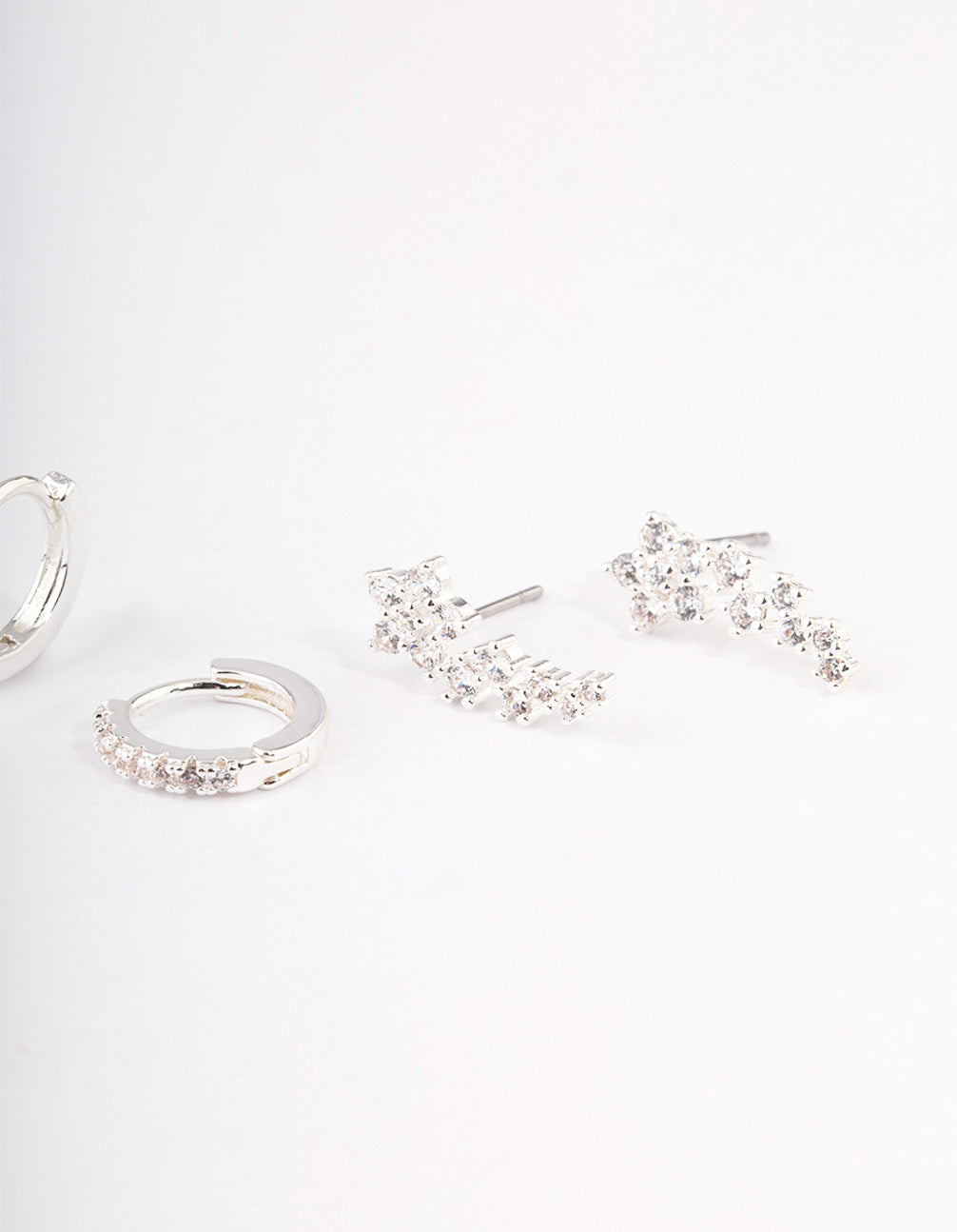 Silver Plated Brass Cubic Zirconia Daisy Chain Earrings Pack