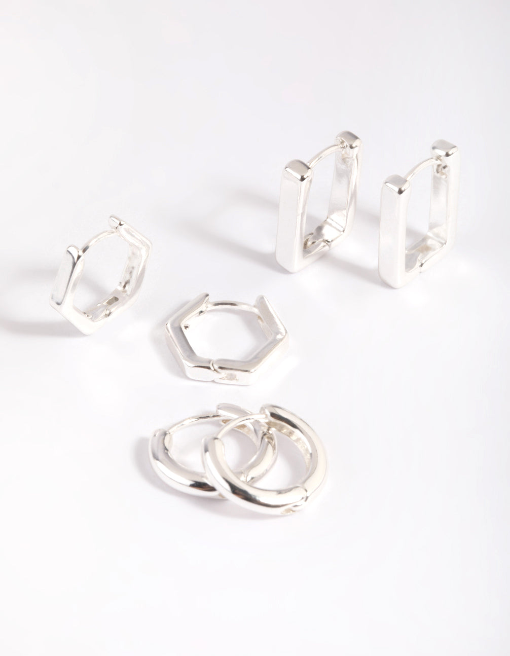 Silver Plated Brass Hexagon Earring Stack 6-Pack