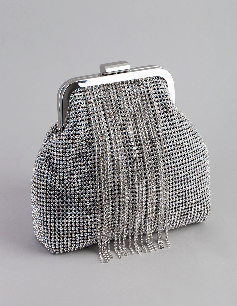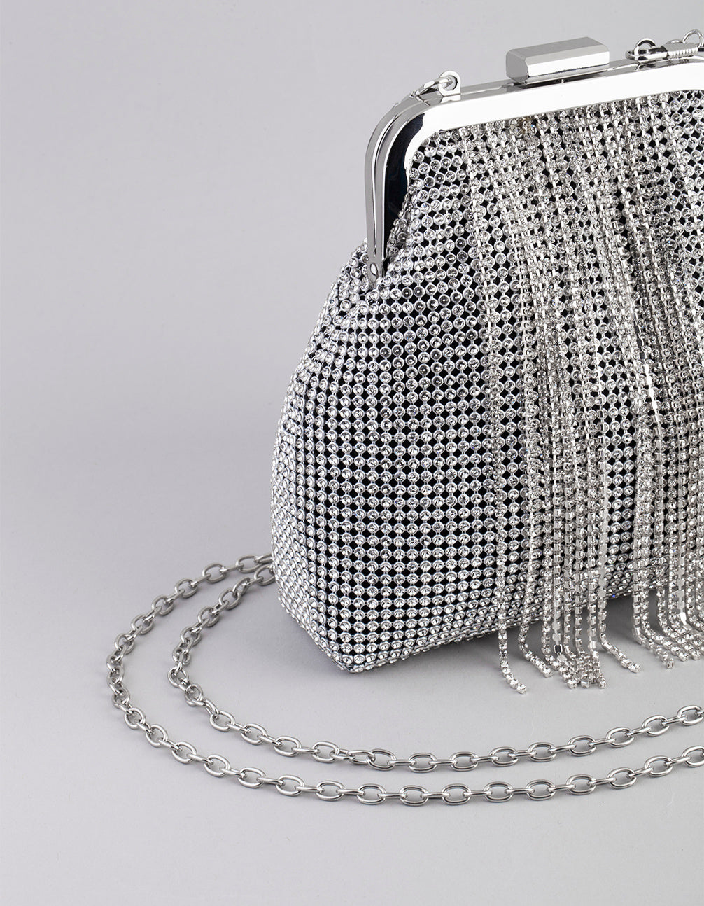 Silver Diamante Chain Fringe Purse