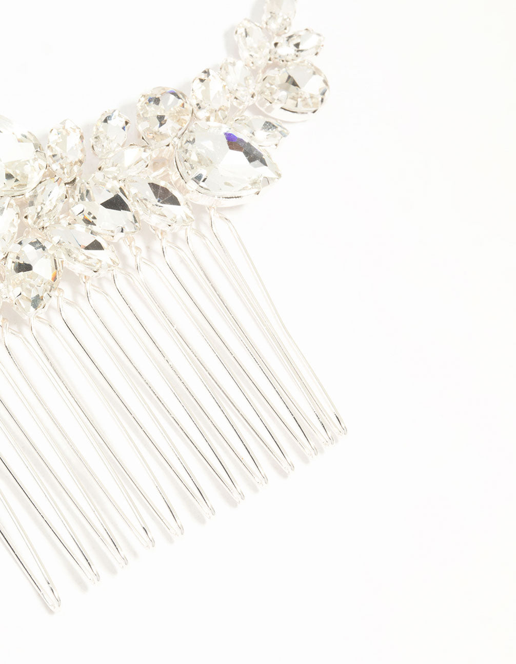 Upgrade your bridal look with the Marquise Crystal W-Shape Hair Comb. This elegant accessory features a silver finish and a W-shaped design decorated with sparkling marquise-set crystals.