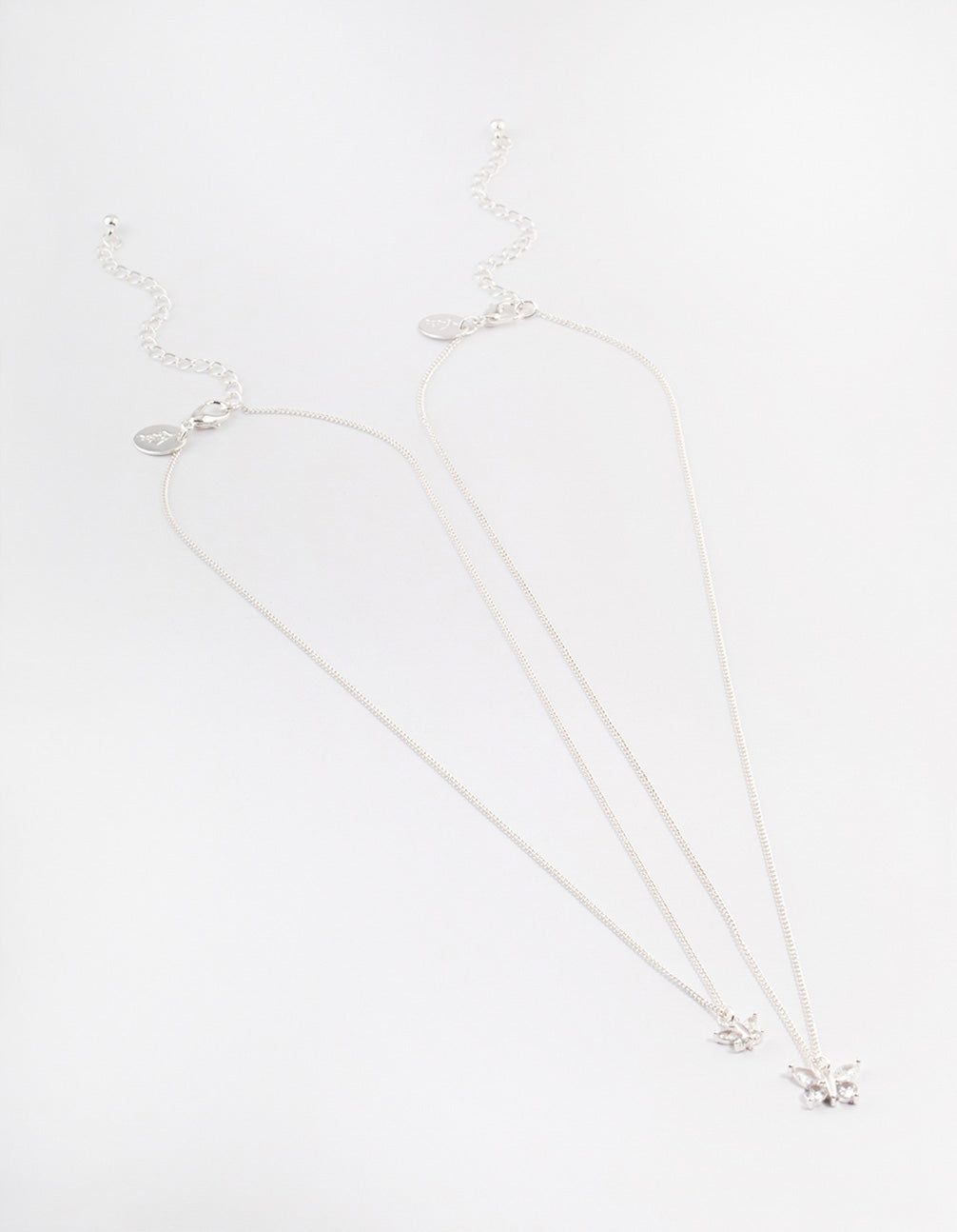 Silver Plated Cubic Zirconia Link Butterfly Necklace Pack